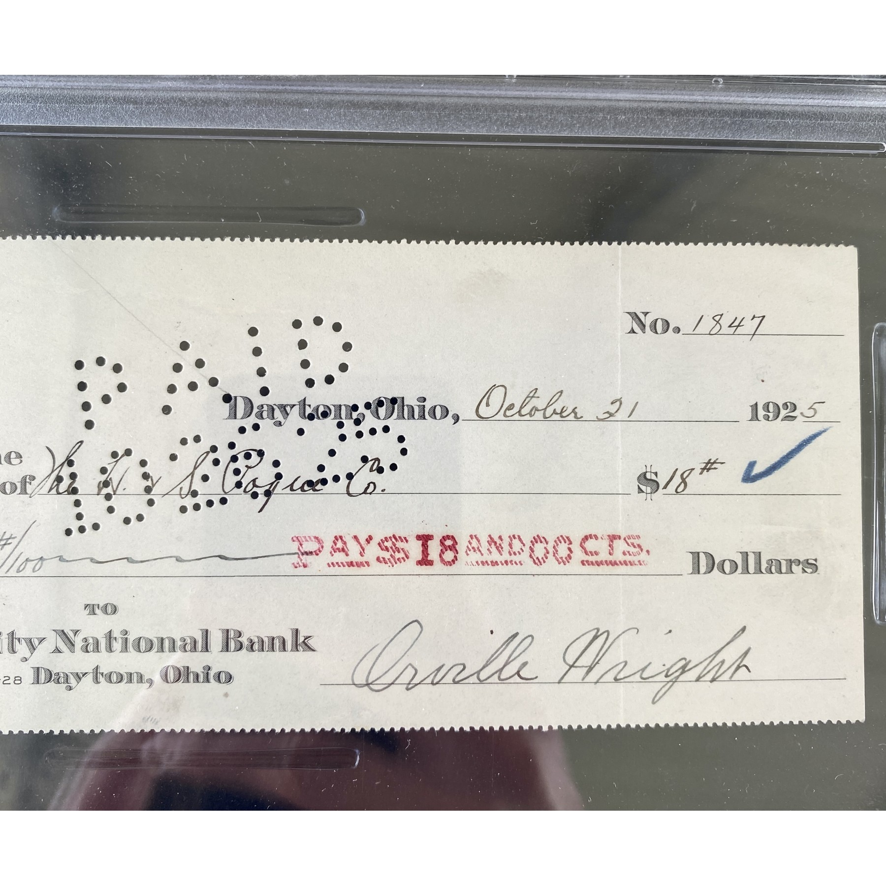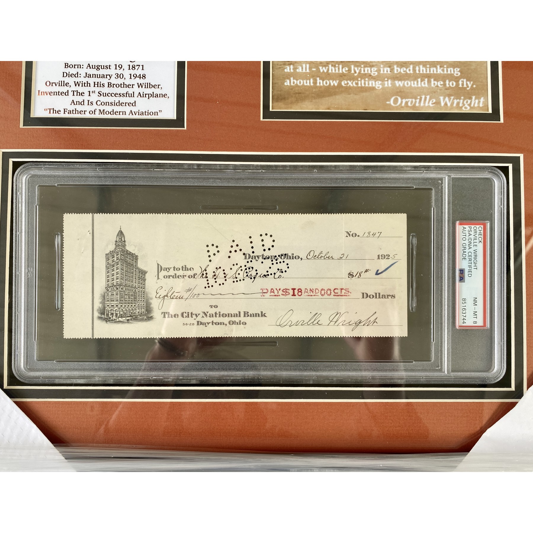 Item #0286 1925 Orville Wright Signed Check – PSA 8 – Framed 17” x 18”