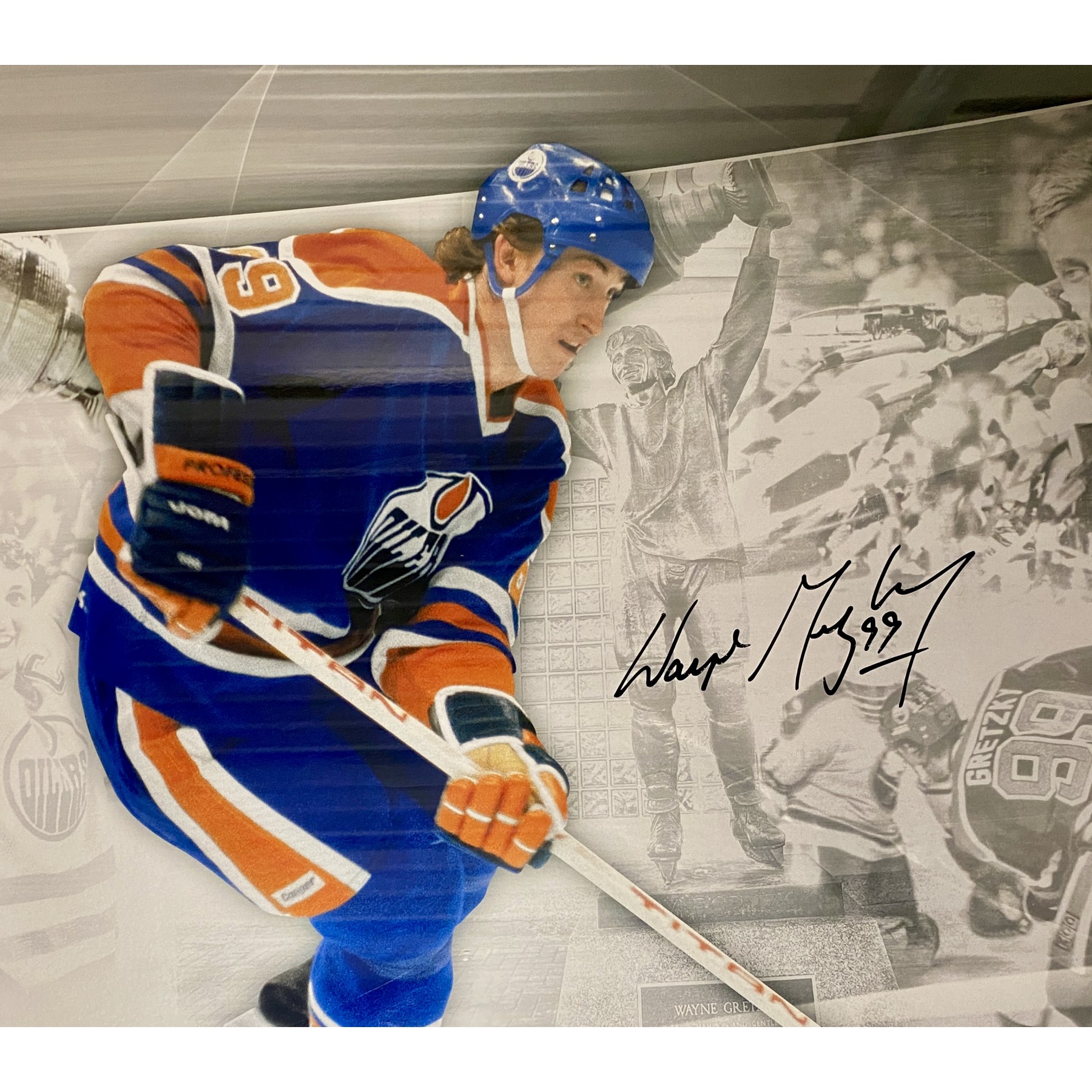 This limited edition 18” x 36” Upper Deck "Game Changers" print, hand-numbered #28/150, is autographed in bold black marker by Michael Jordan & Wayne Gretzky - two icons who redefined their sports. Jordan dominated basketball with six NBA championships & Gretzky revolutionized hockey, becoming the NHL’s all-time leading scorer. Comes complete with an Upper Deck Certificate of Authenticity.