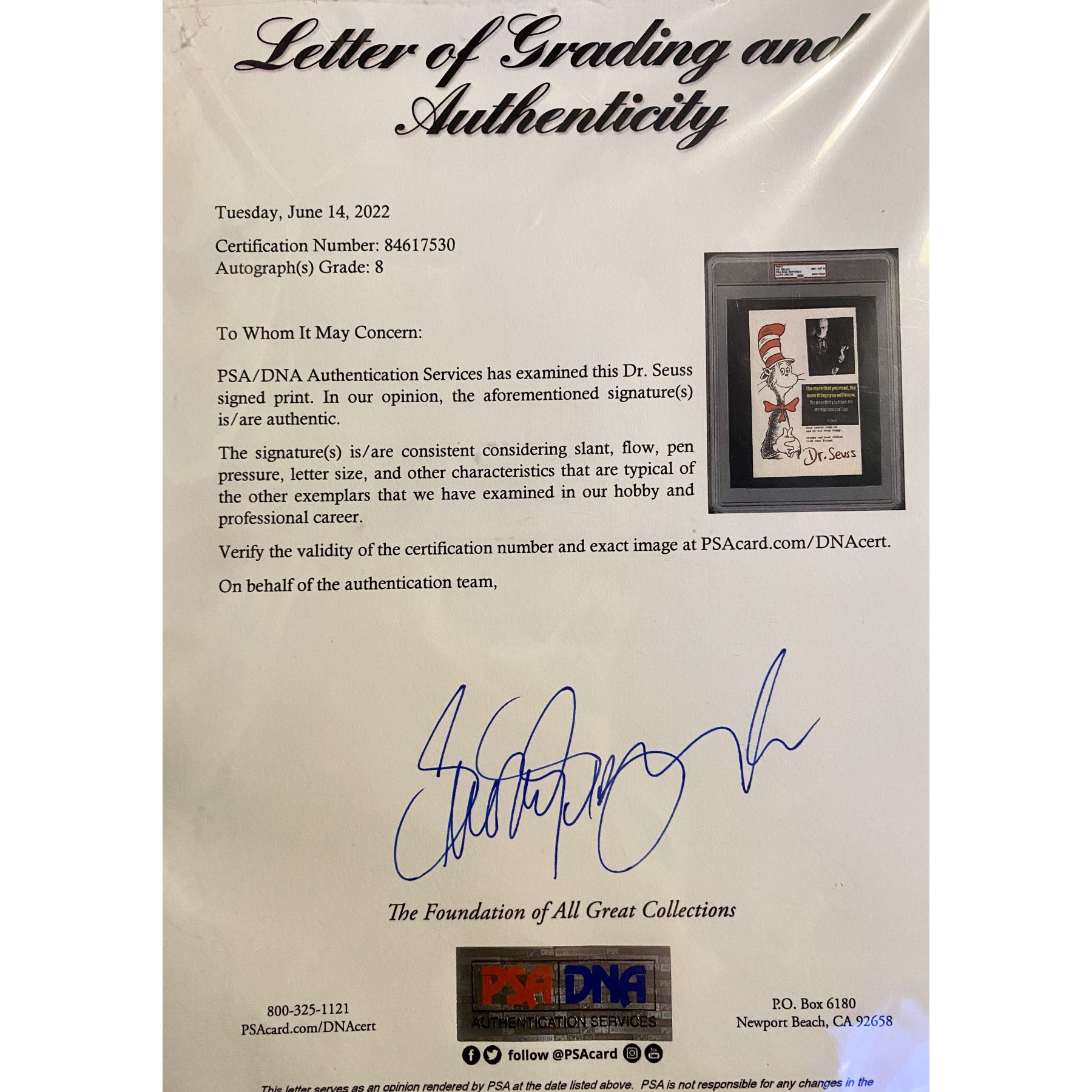 Item #0387 Dr. Seuss Signed Thank You Note - Auto Grade 8 - PSA