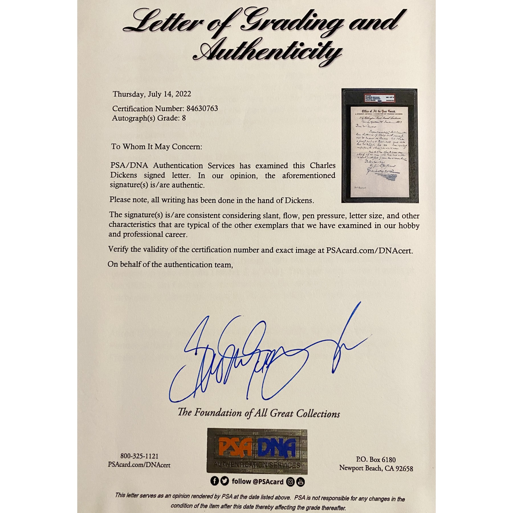 Authentication: PSA/DNA Letter of Authenticity