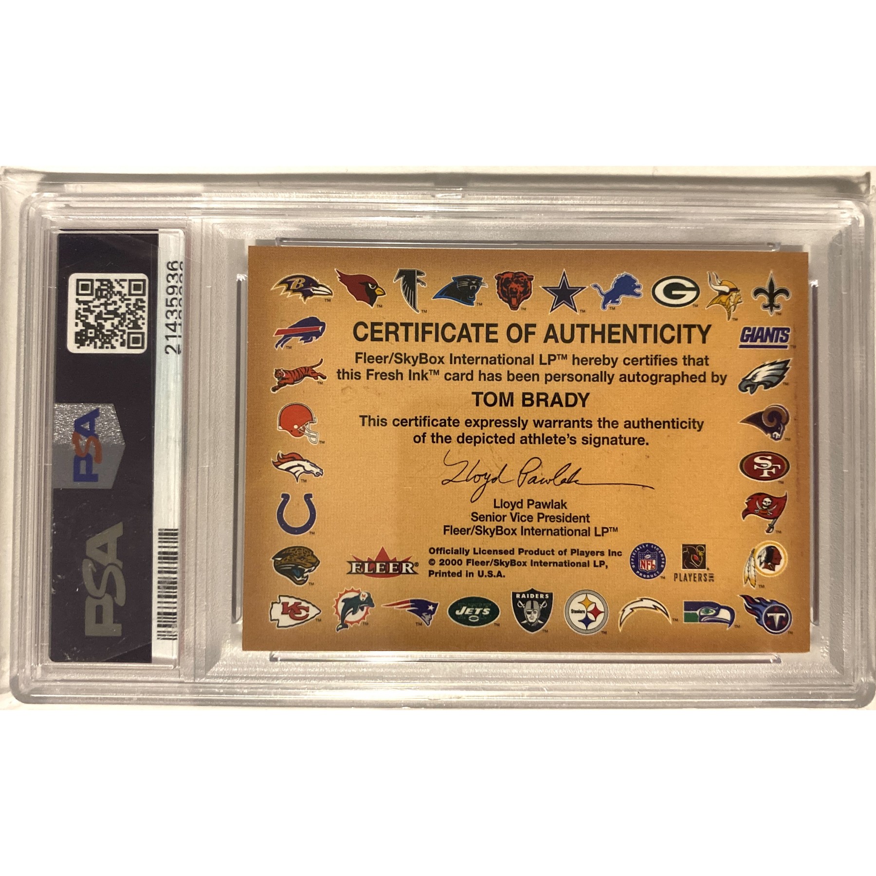 Item #0423 Tom Brady Signed Rookie Card 2000 Fleer Autographics – PSA Auto 10