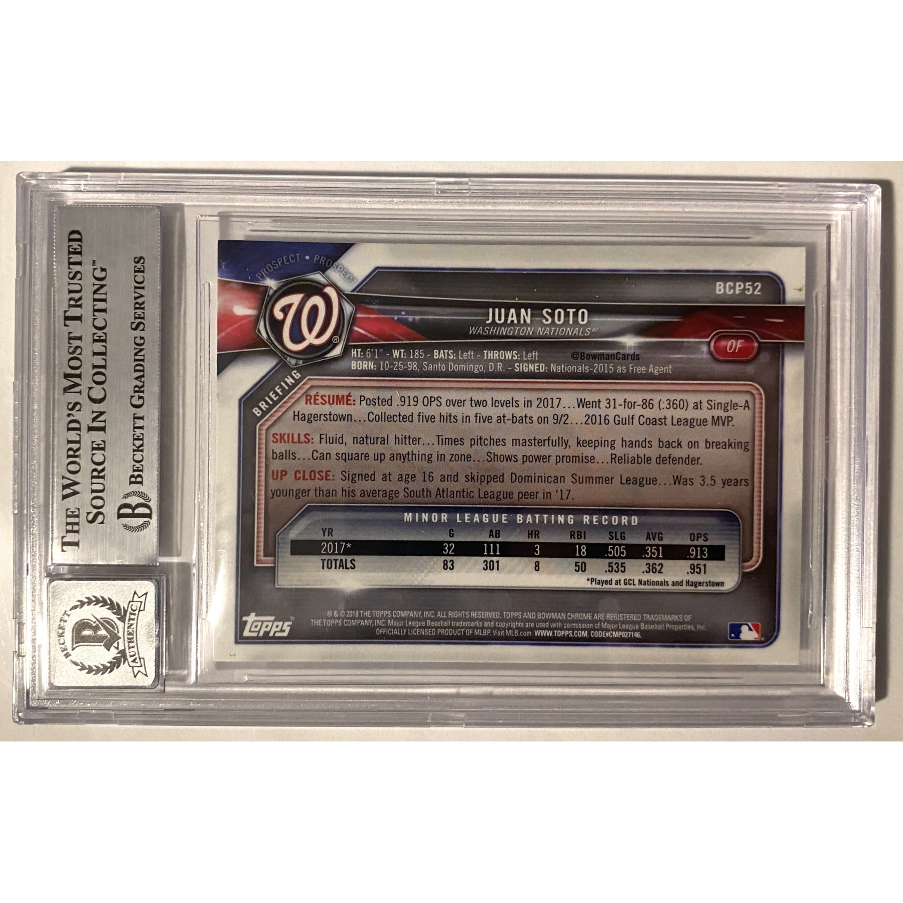 Item #0441 Juan Soto Signed 2018 Bowman Chrome Prospects #BCP52 - Beckett 10 Auto
