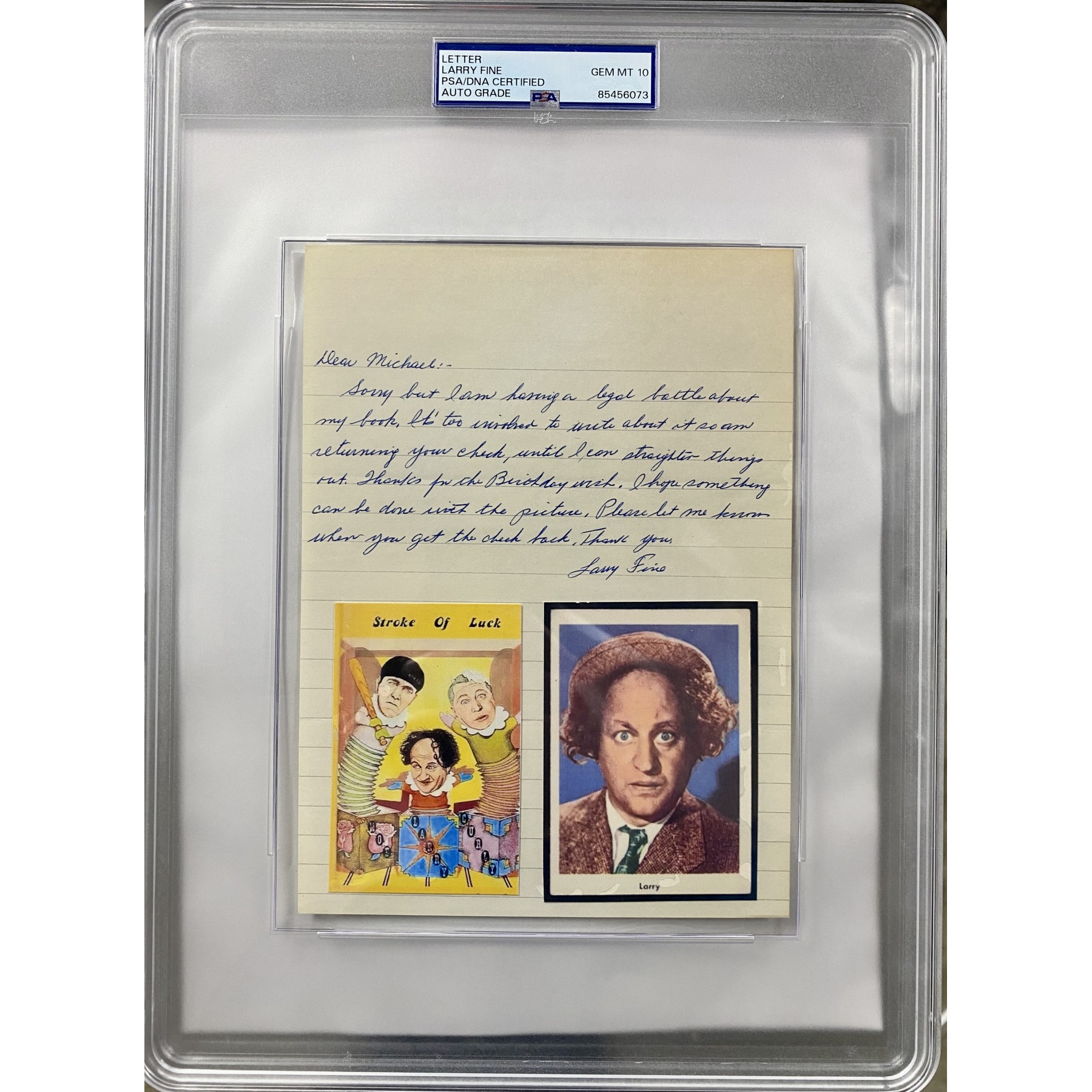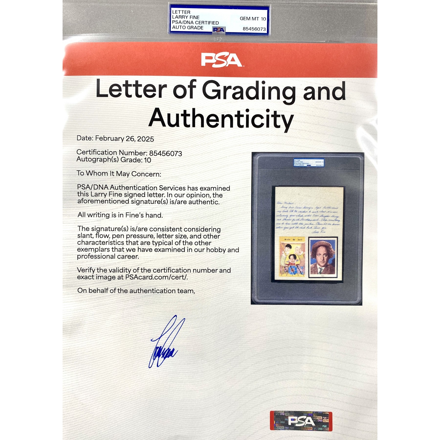 Item #0458 Larry Fine Three Stooges Handwritten & Signed Letter – PSA GEM Mint 10 Auto