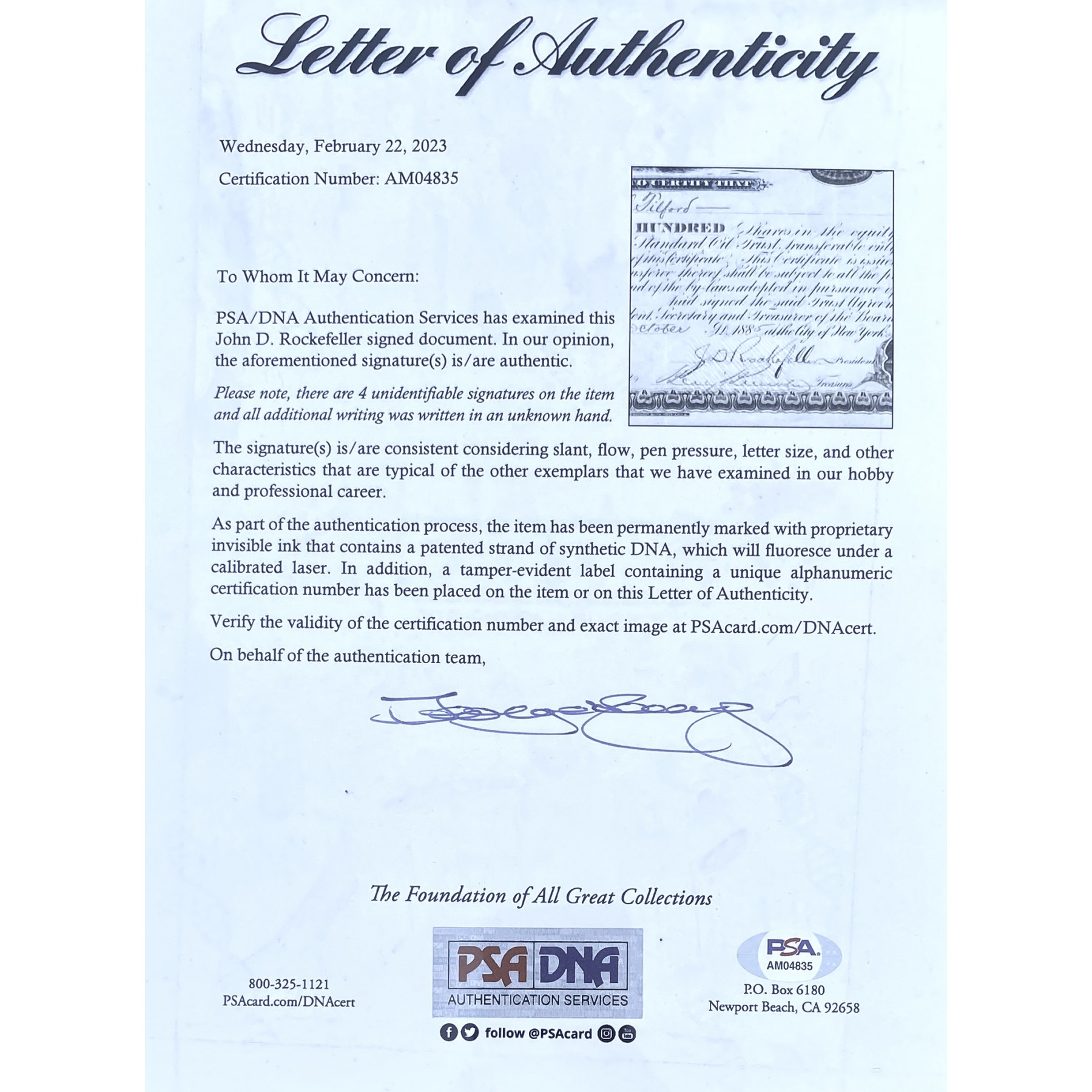 Authentication: PSA/DNA Letter of Authenticity