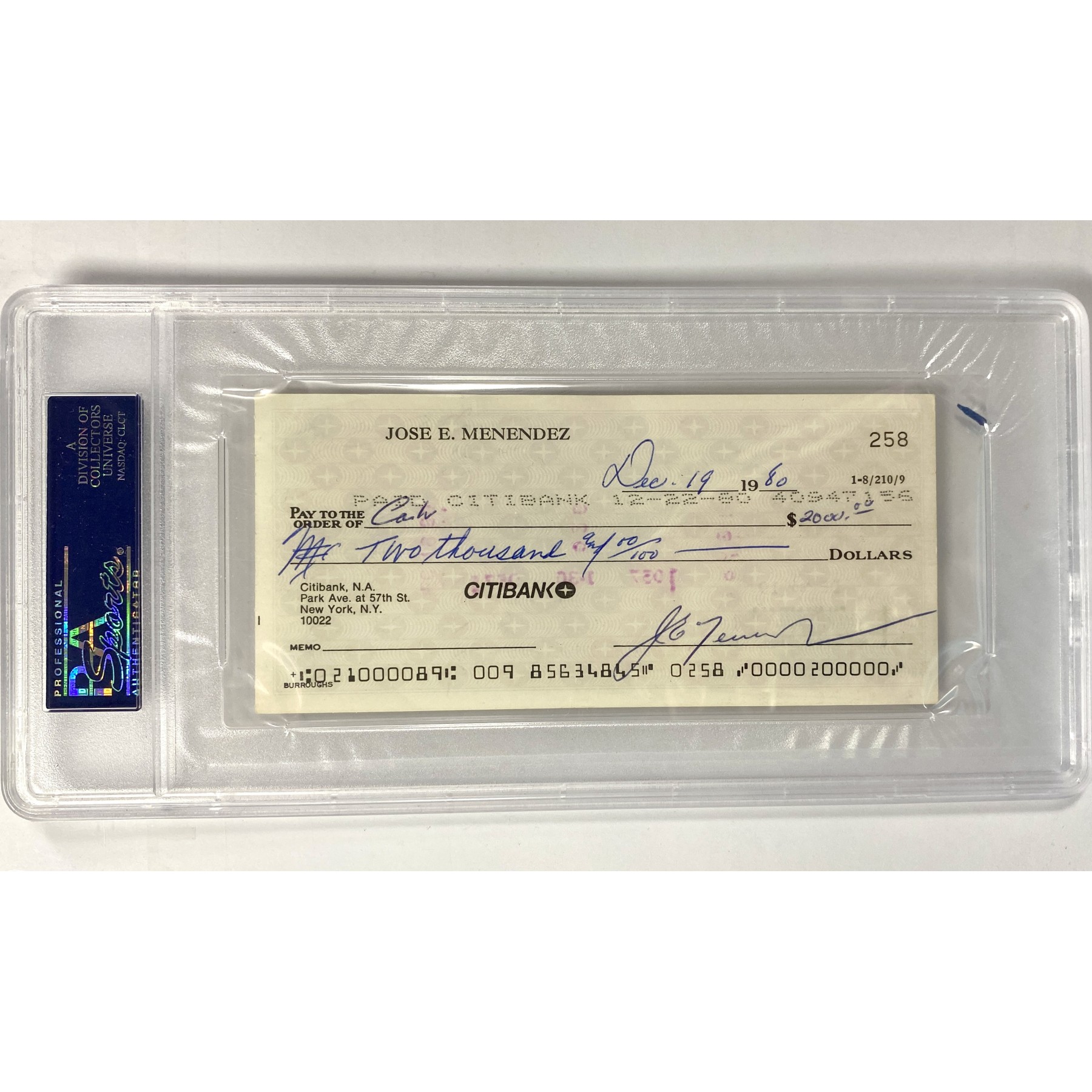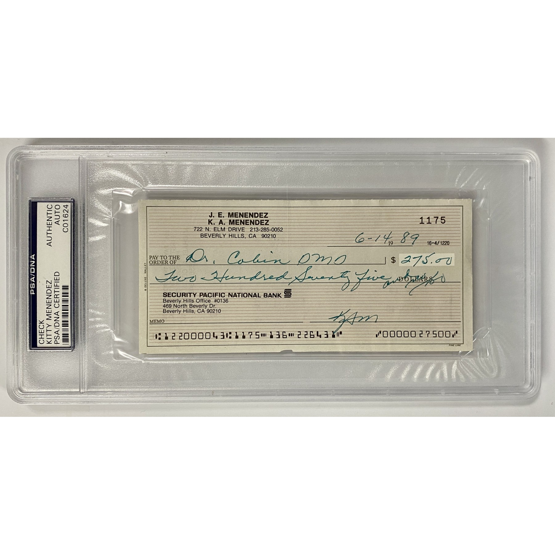 Item #0499 Jose & Mary "Kitty" Menendez Signed Checks - Menendez Brothers Murder Victims - PSA Encapsulated