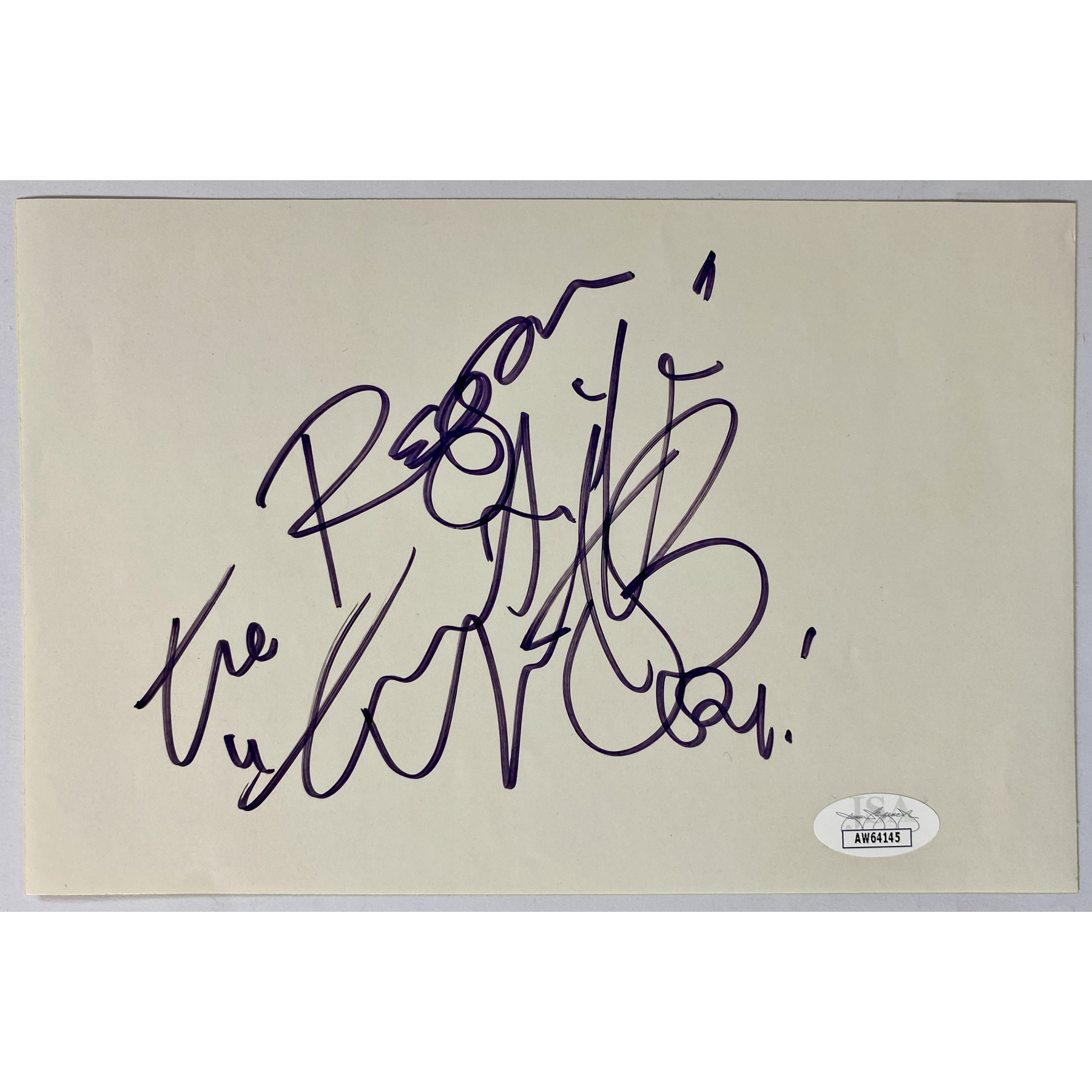 This 8.25" x 5.5" piece is signed by the legendary Charlie Watts, iconic drummer of The Rolling Stones. With his jazz-influenced rhythm, Watts anchored the band’s sound for nearly six decades, becoming a cornerstone of rock history. Signed boldly and authenticated by JSA with Certificate of Authenticity included.
