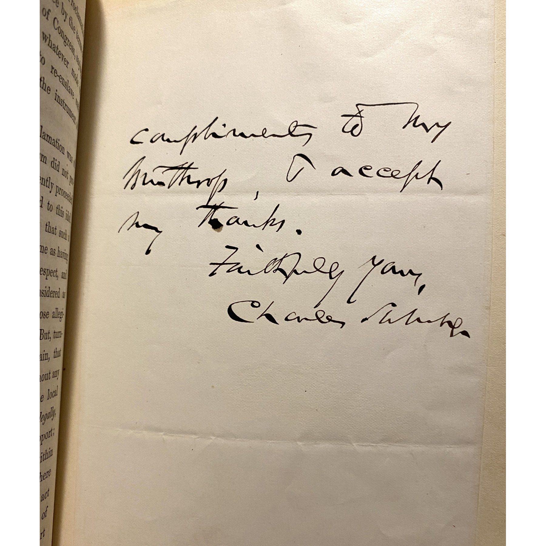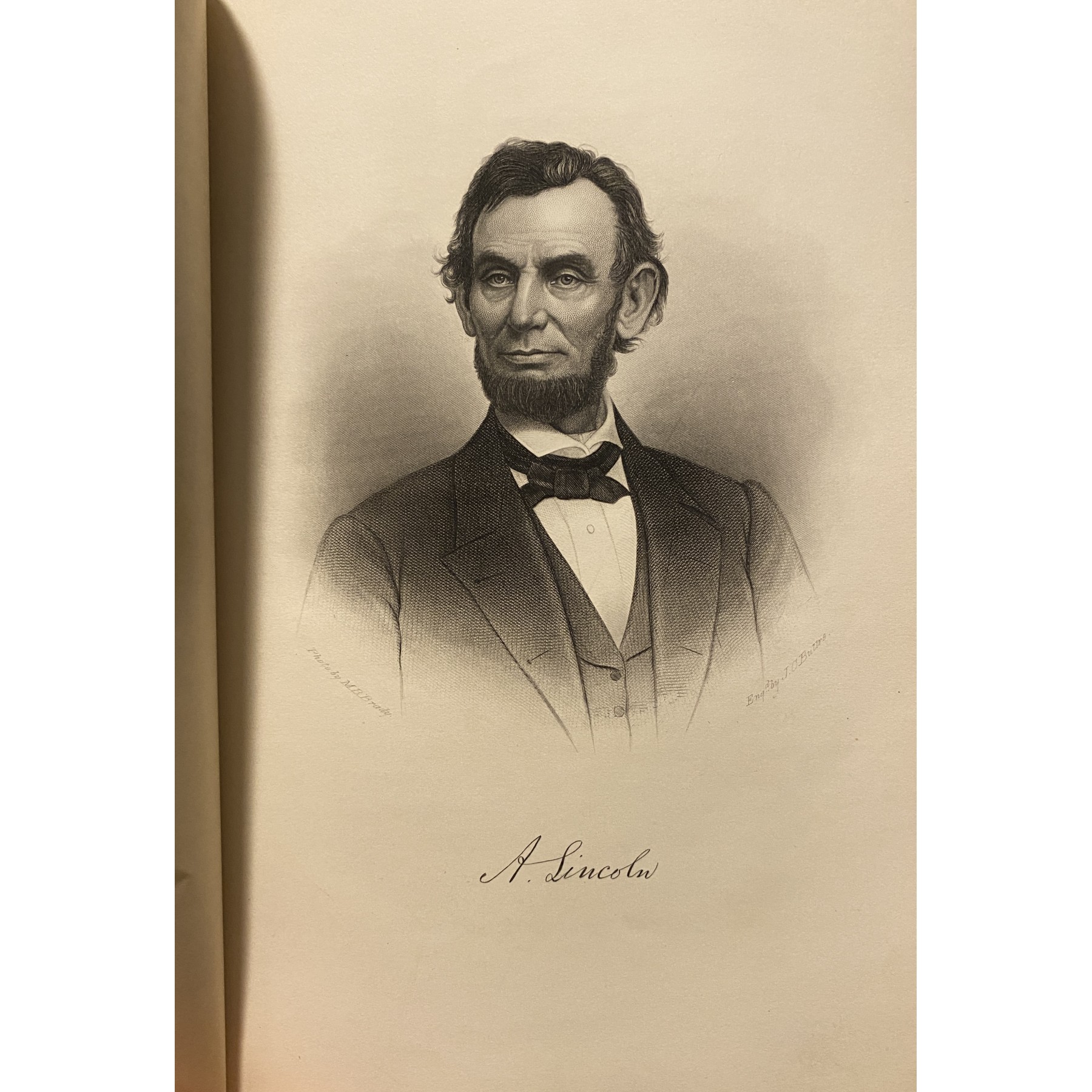 Leather-bound hardcover, 6.5” x 9.5”, 61 pages, with letters and ephemera, including: two types of tickets for admission to the memorial services held for the late President Abraham Lincoln at the Boston Music Hall on June 1, 1865; an ALS by the author of this eulogy, Charles Sumner & detailed photo engravings of Abraham Lincoln, Thomas Jefferson, Jefferson Davis, and others; the program for the City of Boston's memorial services honoring Lincoln; and letters by members of the committee who organized the event. Considering the publishing date of 1865, the book itself is in excellent condition for its age. Includes PSA/DNA Letter of Authenticity for Eulogy’s author Charles Sumner’s autograph, graded a PSA Mint 9.