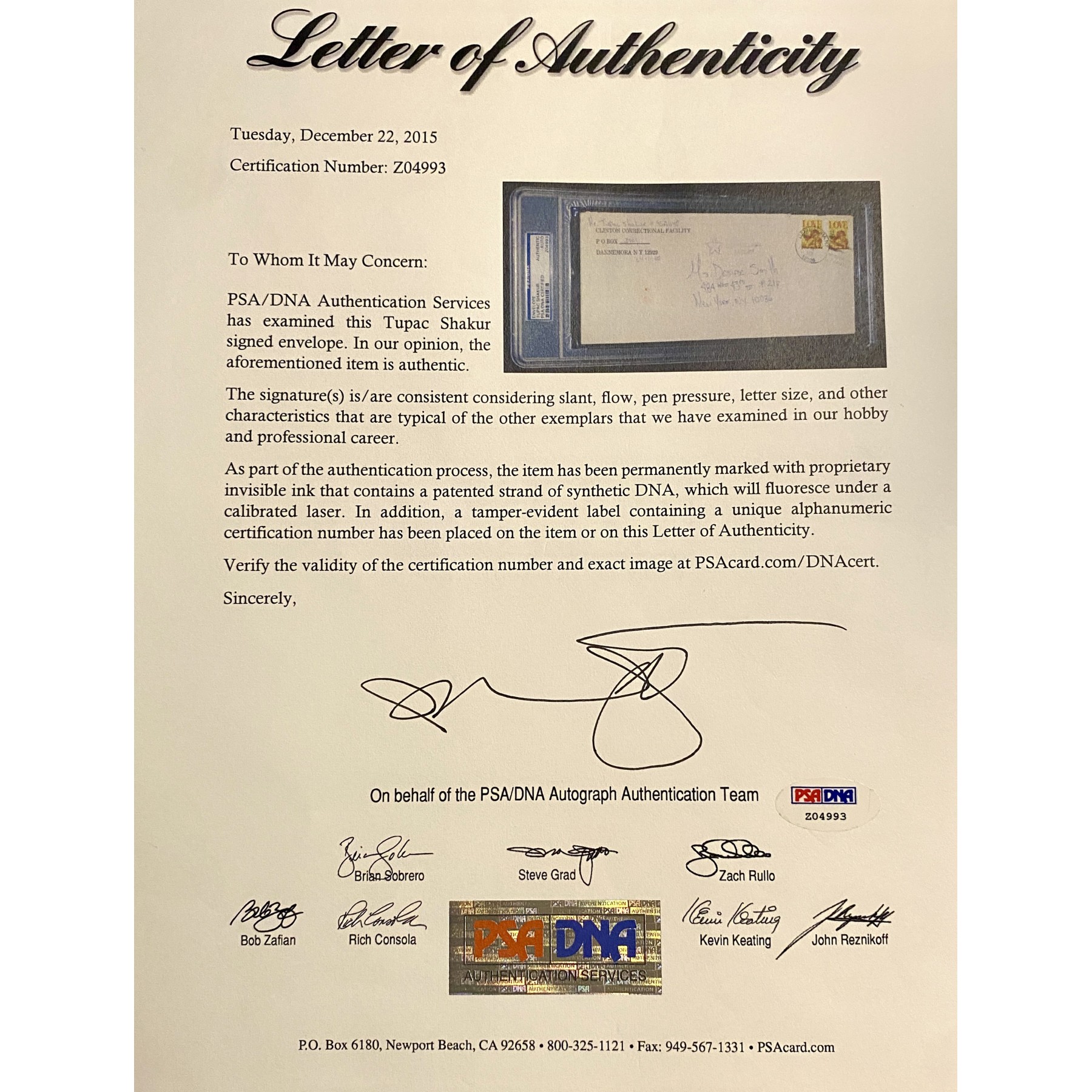 Item #0523 Tupac Shakur Signed Handwritten Letter & Envelope from Prison, 1995 – "Thug Love 4 Life, 2Pac" - PSA