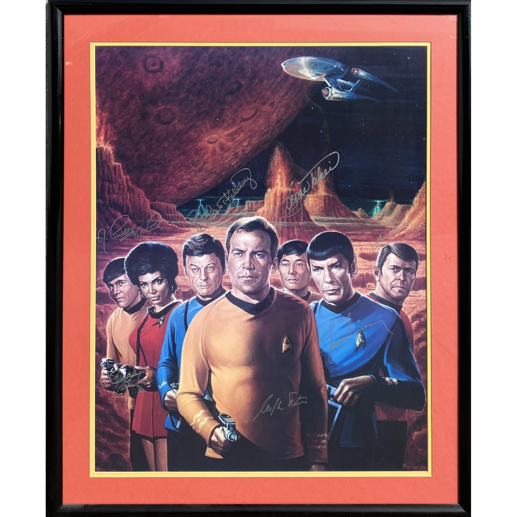 Item #0280 Star Trek Original Cast Signed Print – Ron Lewis Art – Framed 27.5” x 33.5”