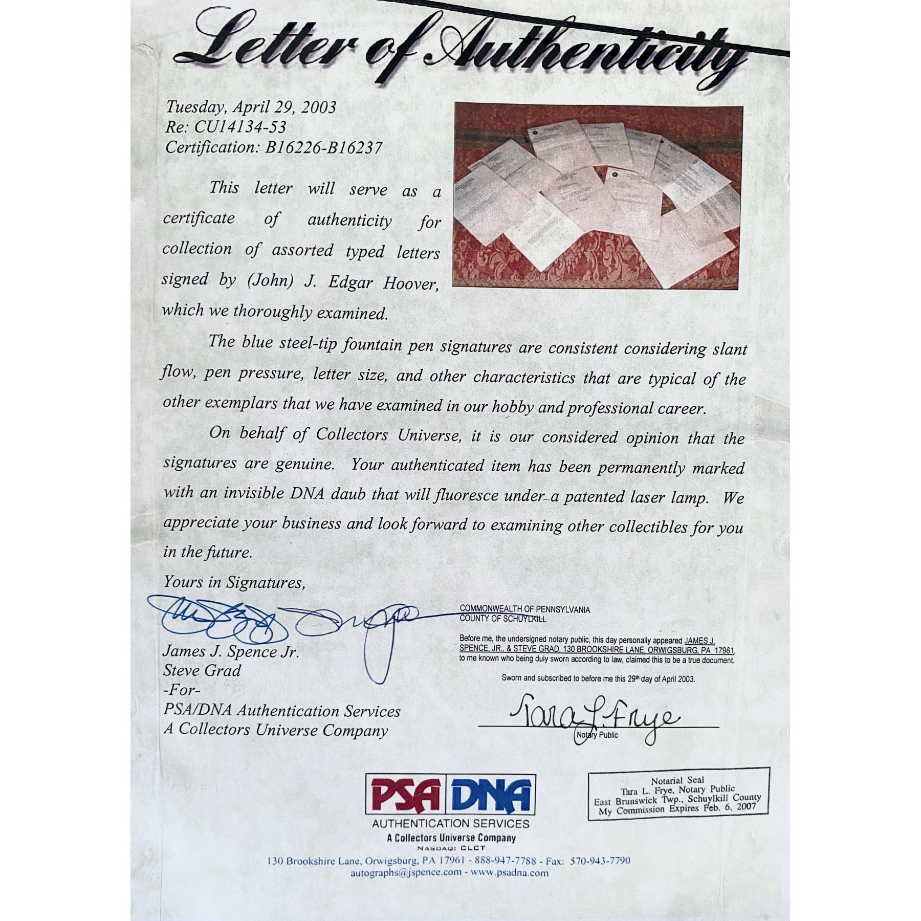 Authentication: PSA/DNA Letter of Authenticity