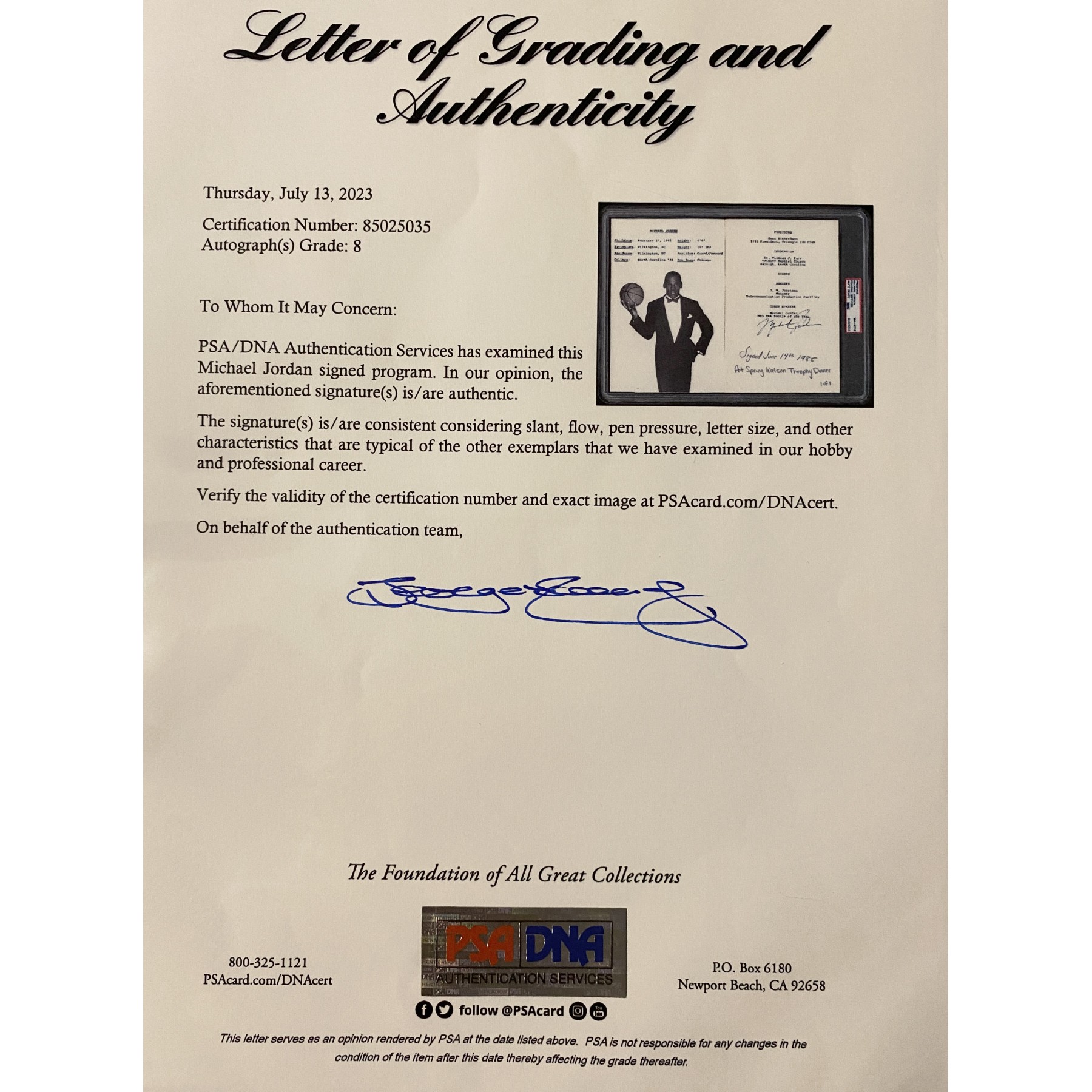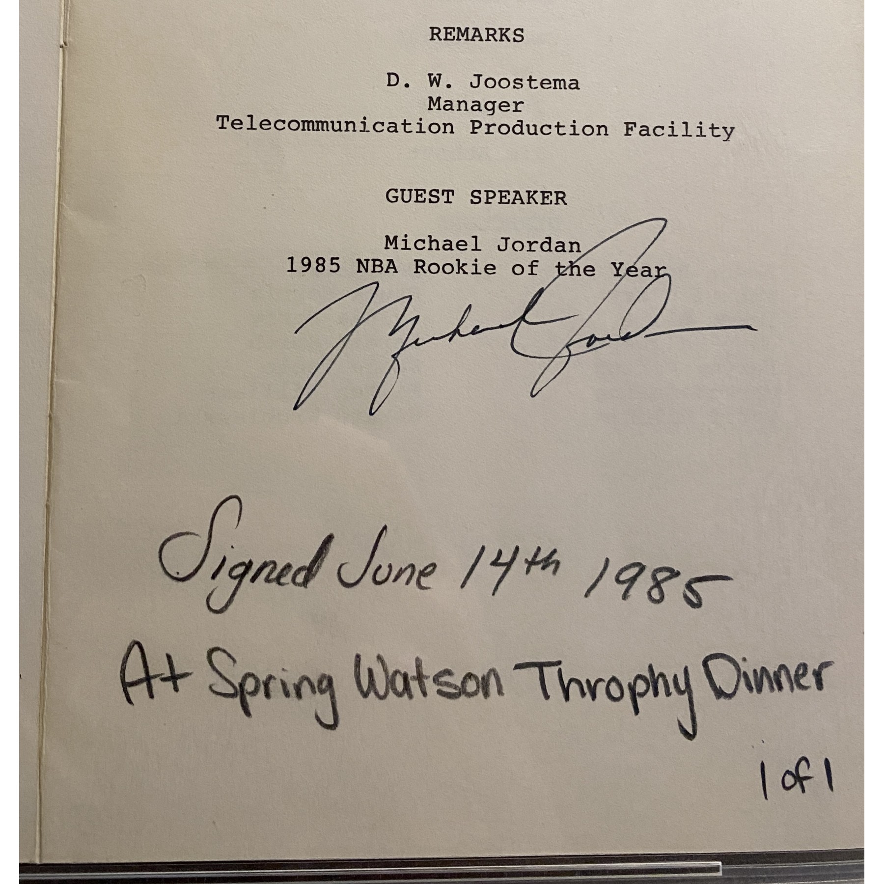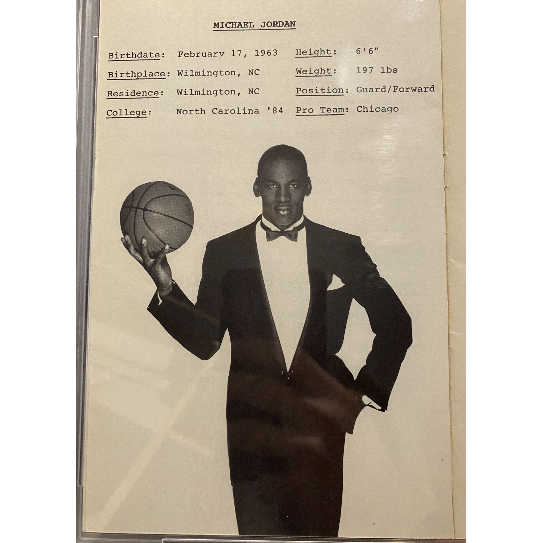 Item #0376 Michael Jordan Signed 1985 Rookie Of The Year IBM Club Dinner Brochure 1 of 1! - Auto Grade 8 - PSA/DNA LOA