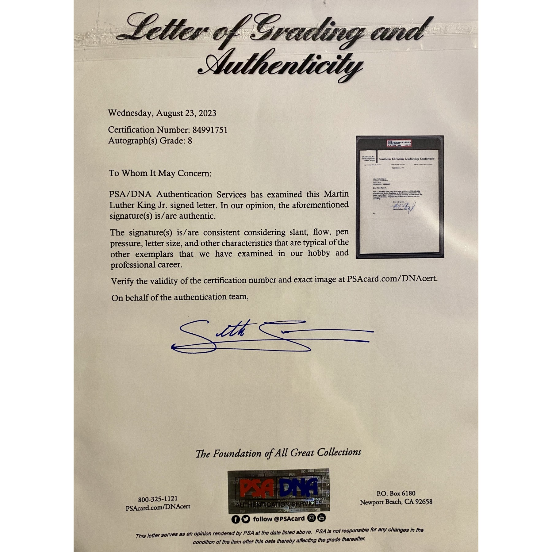 Item #0385 Martin Luther King Jr. Signed 1964 Letter - Auto Grade 8 - PSA/DNA
