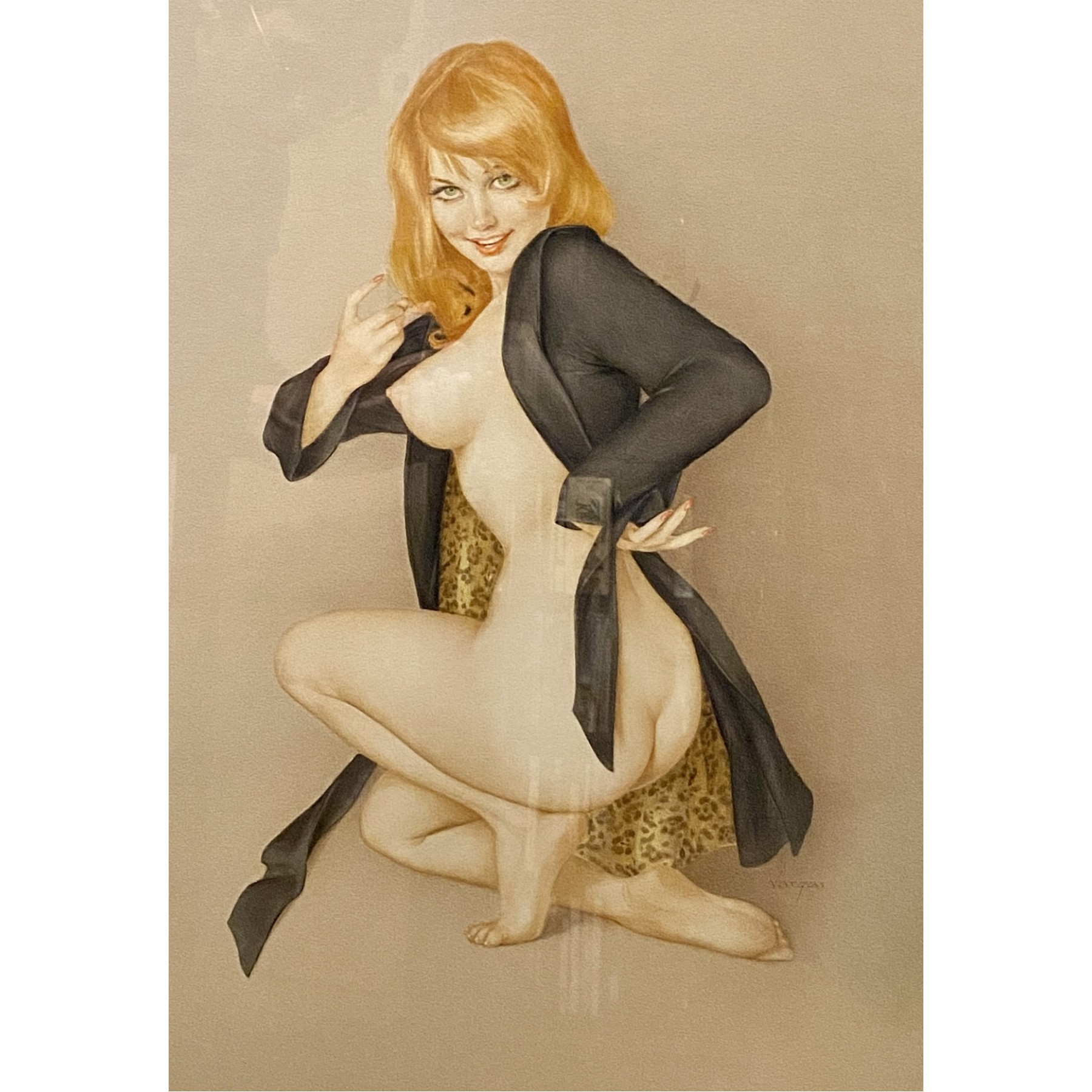 This stunning original watercolor and pencil art piece by Alberto Vargas appeared in the February 1972 issue of Playboy Magazine and was acquired directly from the Playboy archives. Signed by Vargas in the lower right-hand corner, this artwork showcases his masterful portrayal of elegance and allure. Alberto Vargas was renowned for his iconic pin-up art and contributions to Playboy, capturing the essence of beauty and sophistication. Includes a copy of the Feb. 1972 issue the piece was featured in.