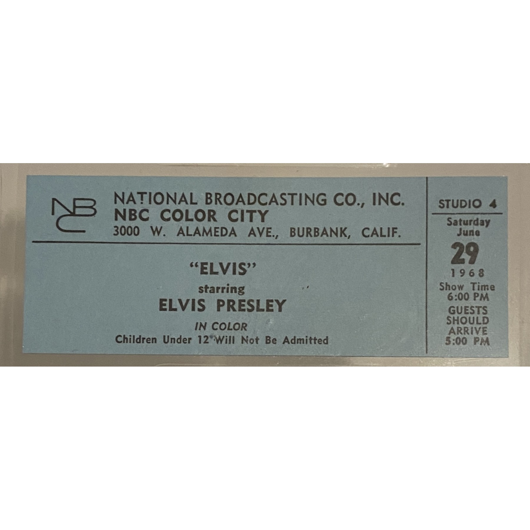 Item #0401 Elvis Presley '68 Comeback Special TV Taping Ticket – PSA Gem Mint 10