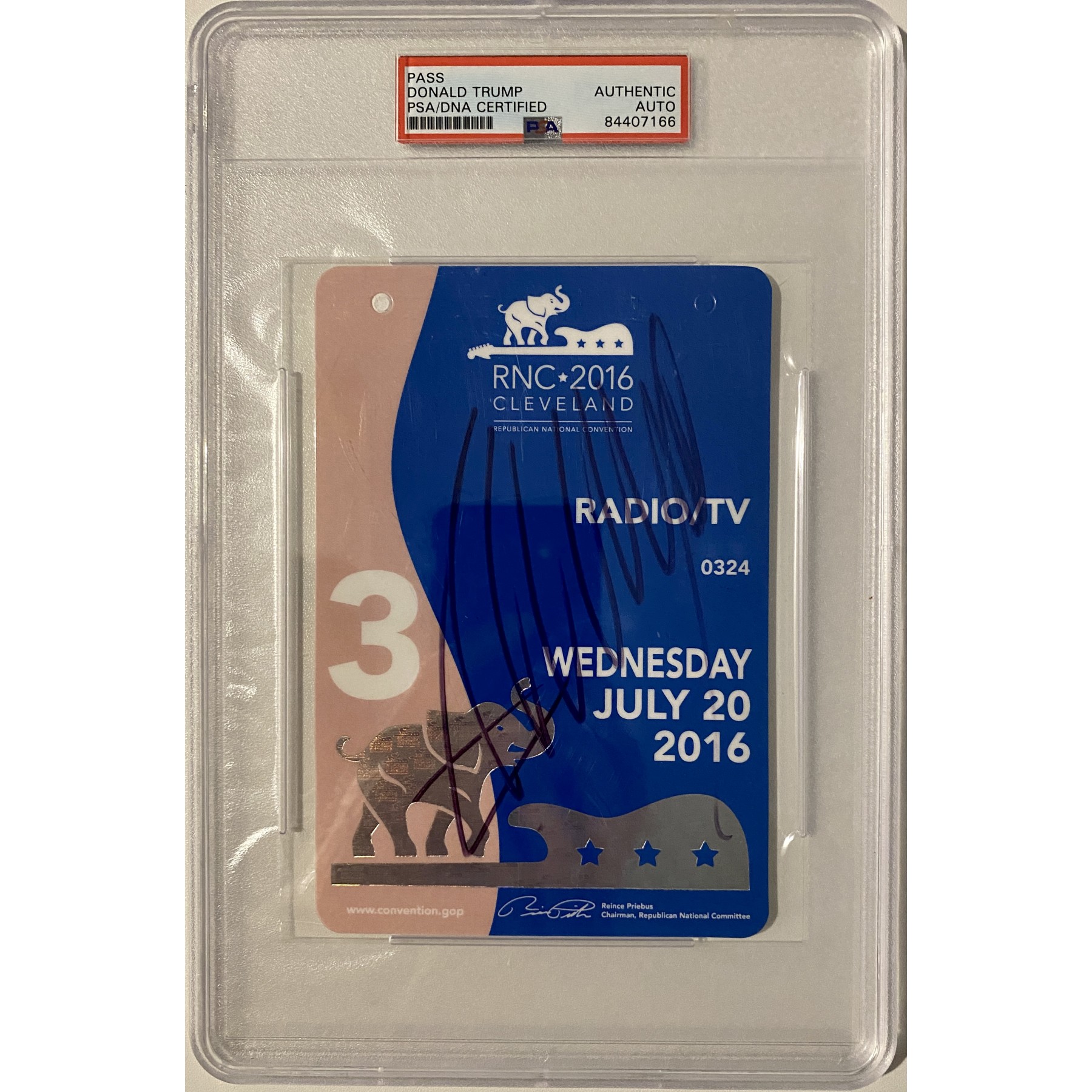 Item #0408 Donald Trump Signed 2016 Republican National Convention Pass – PSA Encapsulated