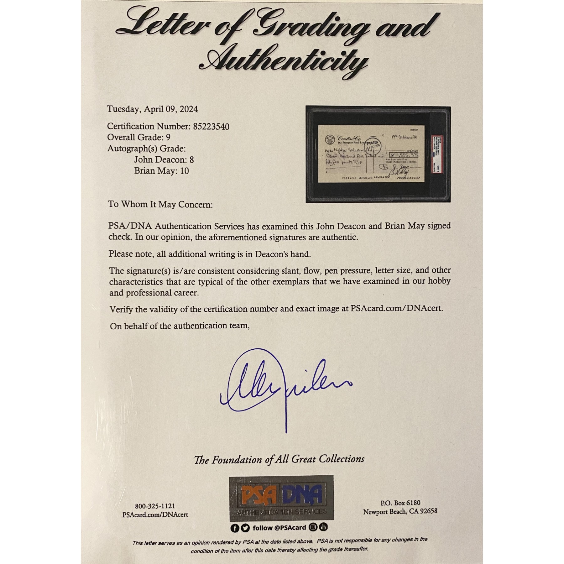 Item #0412 Queen Signed Bank Checks – Freddie Mercury, Brian May, Roger Taylor & John Deacon – PSA