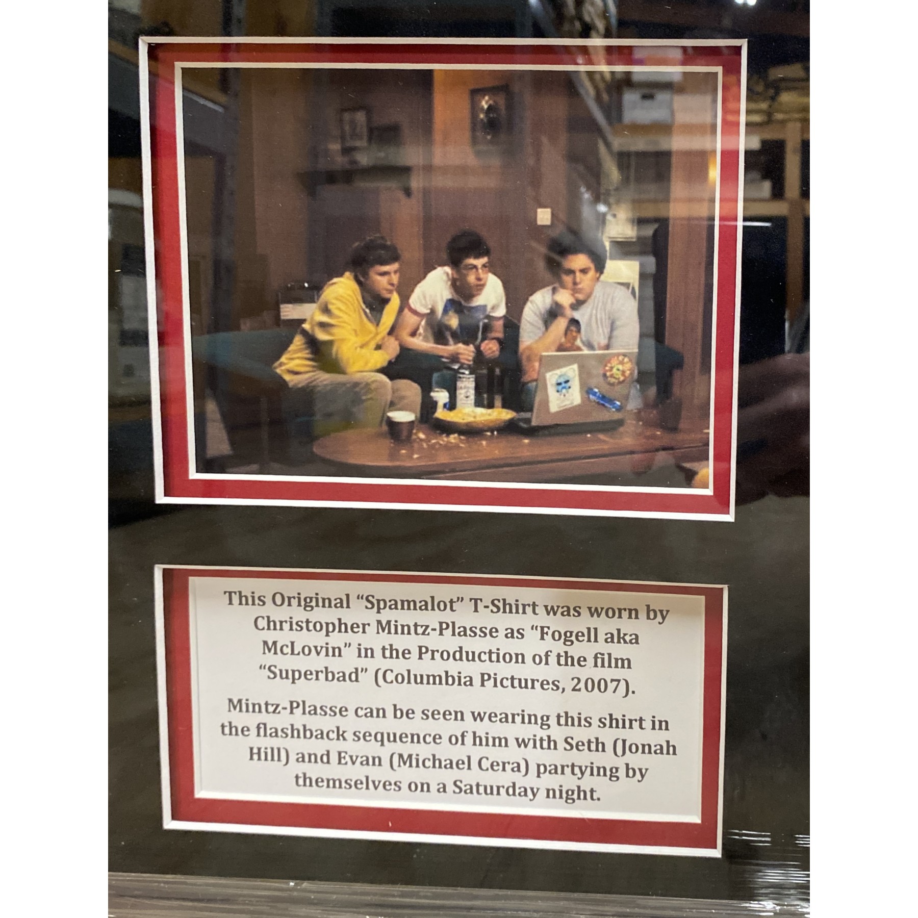 Item #0414 Superbad "Spamalot" T-Shirt Screen-Worn by Christopher Mintz-Plasse as Fogell (McLovin) + Signed ID - Framed Display SOLD