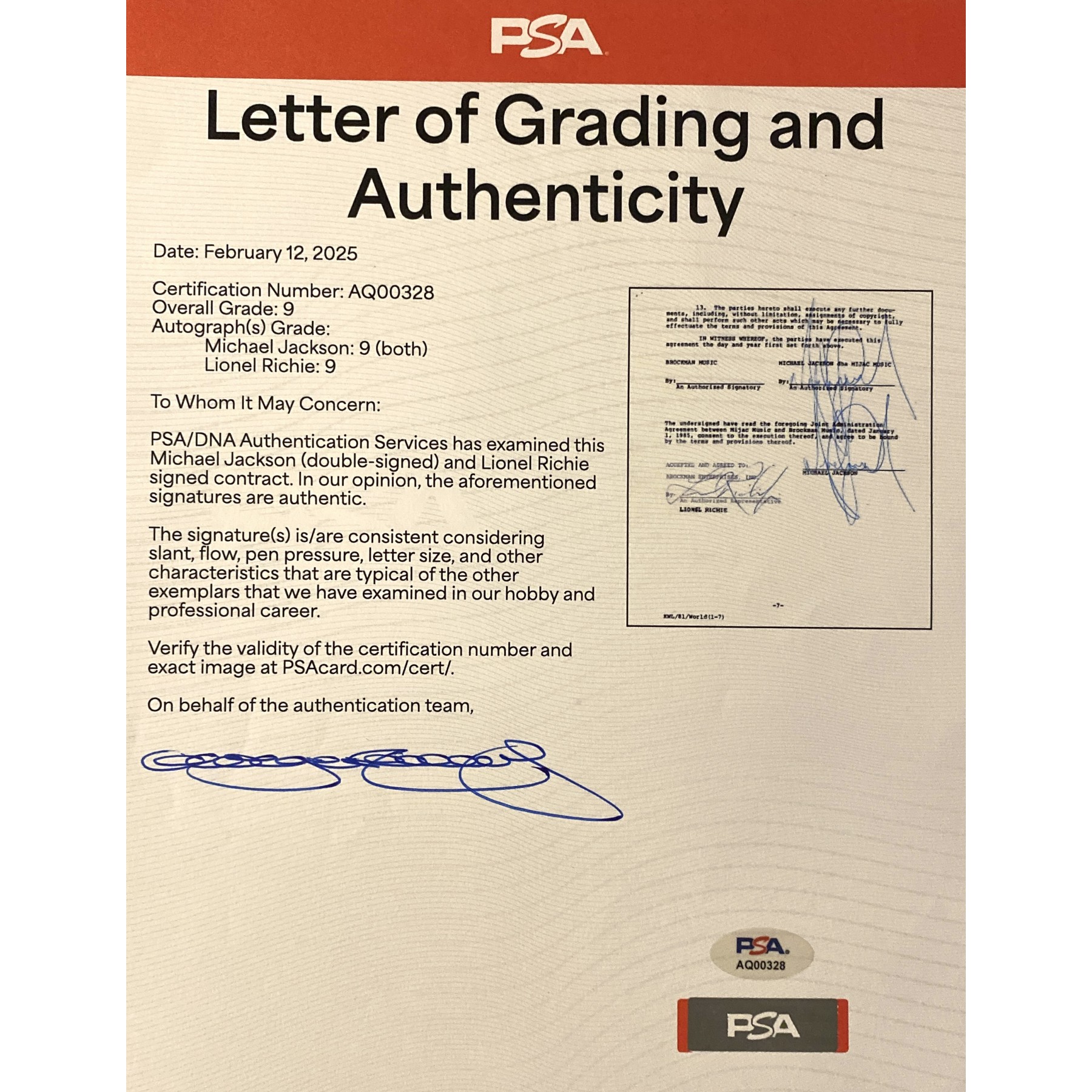Authentication: PSA/DNA Letter of Authenticity