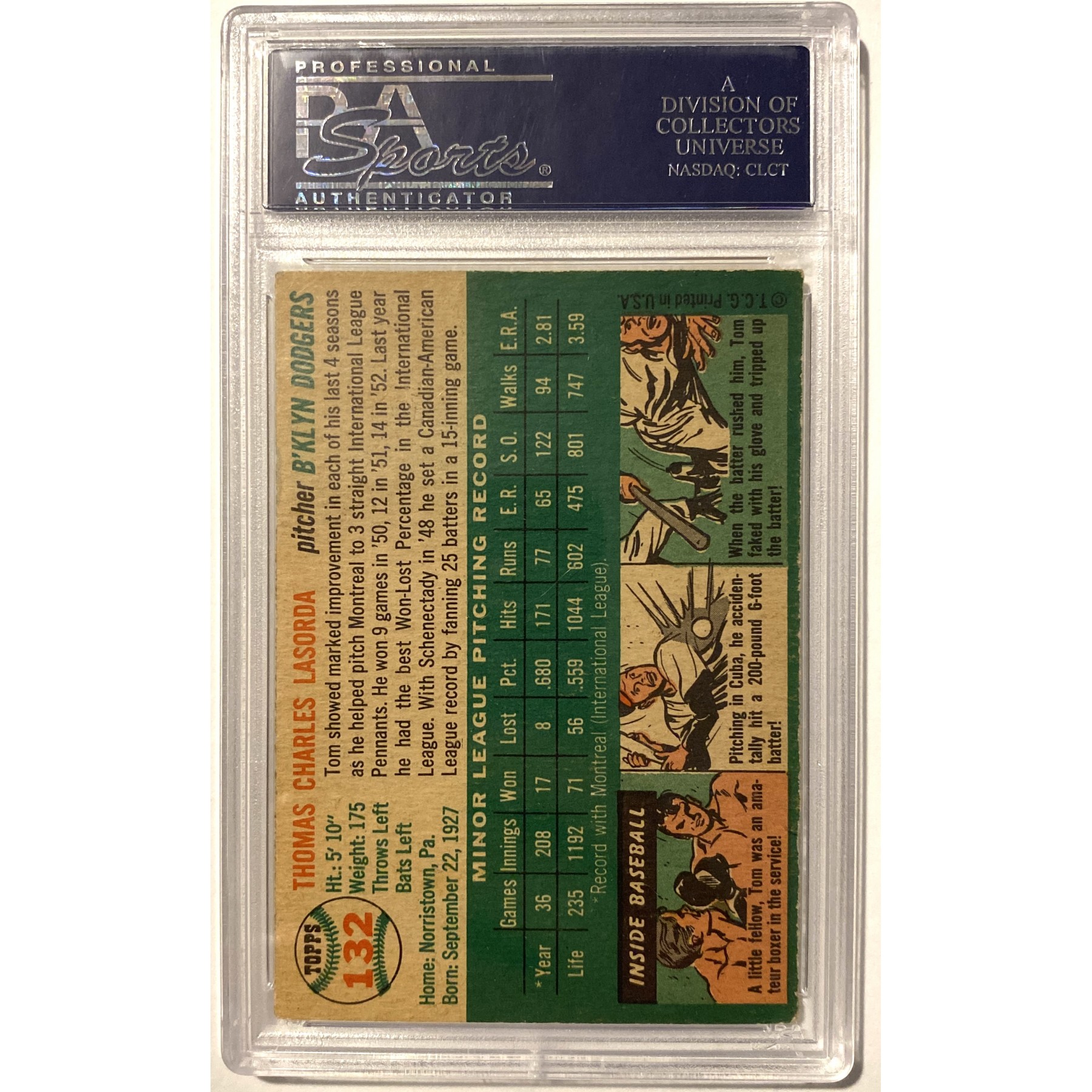 Item #0426 Tommy Lasorda Signed 1954 Topps #132 – PSA Encapsulated, Auto 9