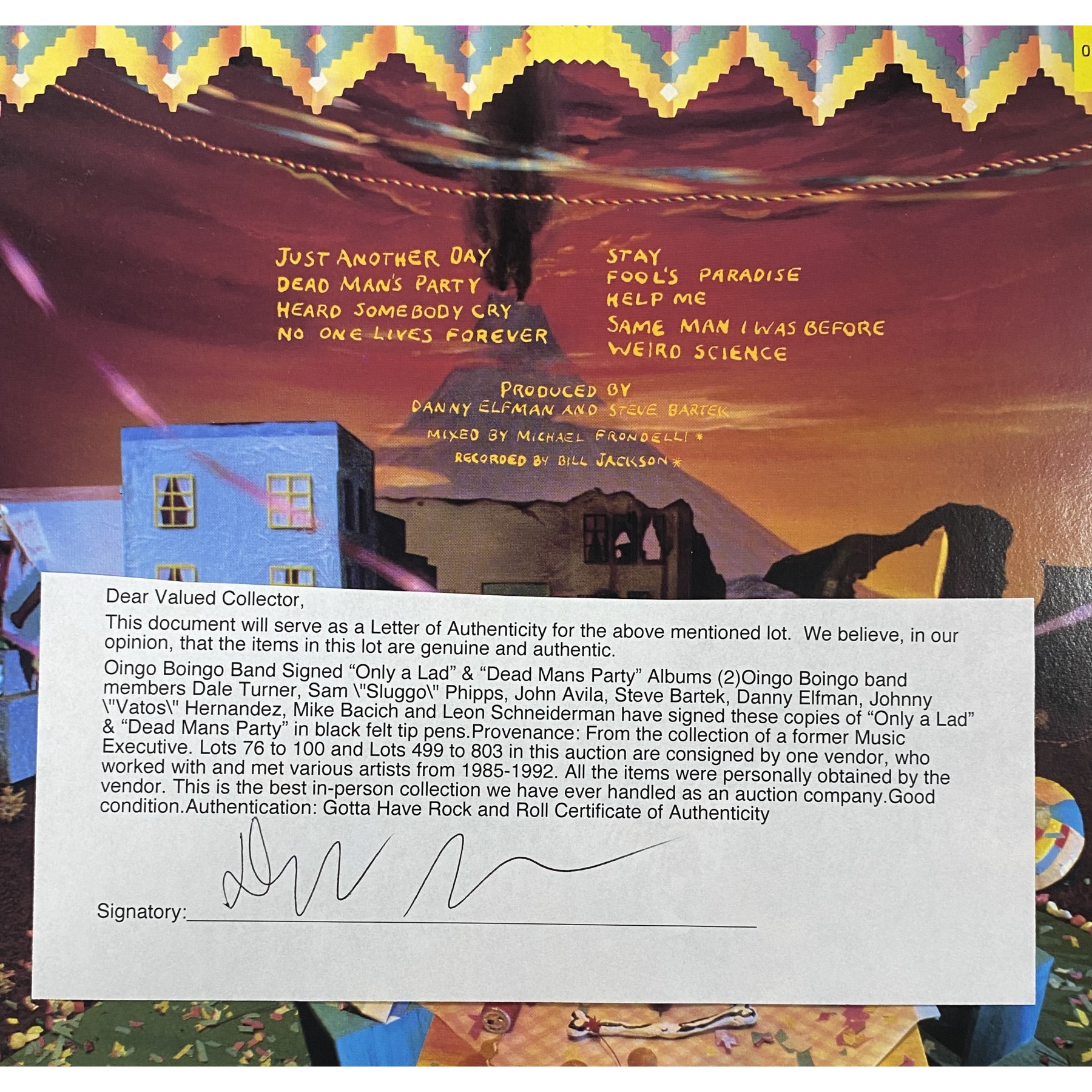 Item #0450 Oingo Boingo Signed "Dead Man’s Party" LP – Full Band w/ Danny Elfman + PSA/DNA COA SOLD