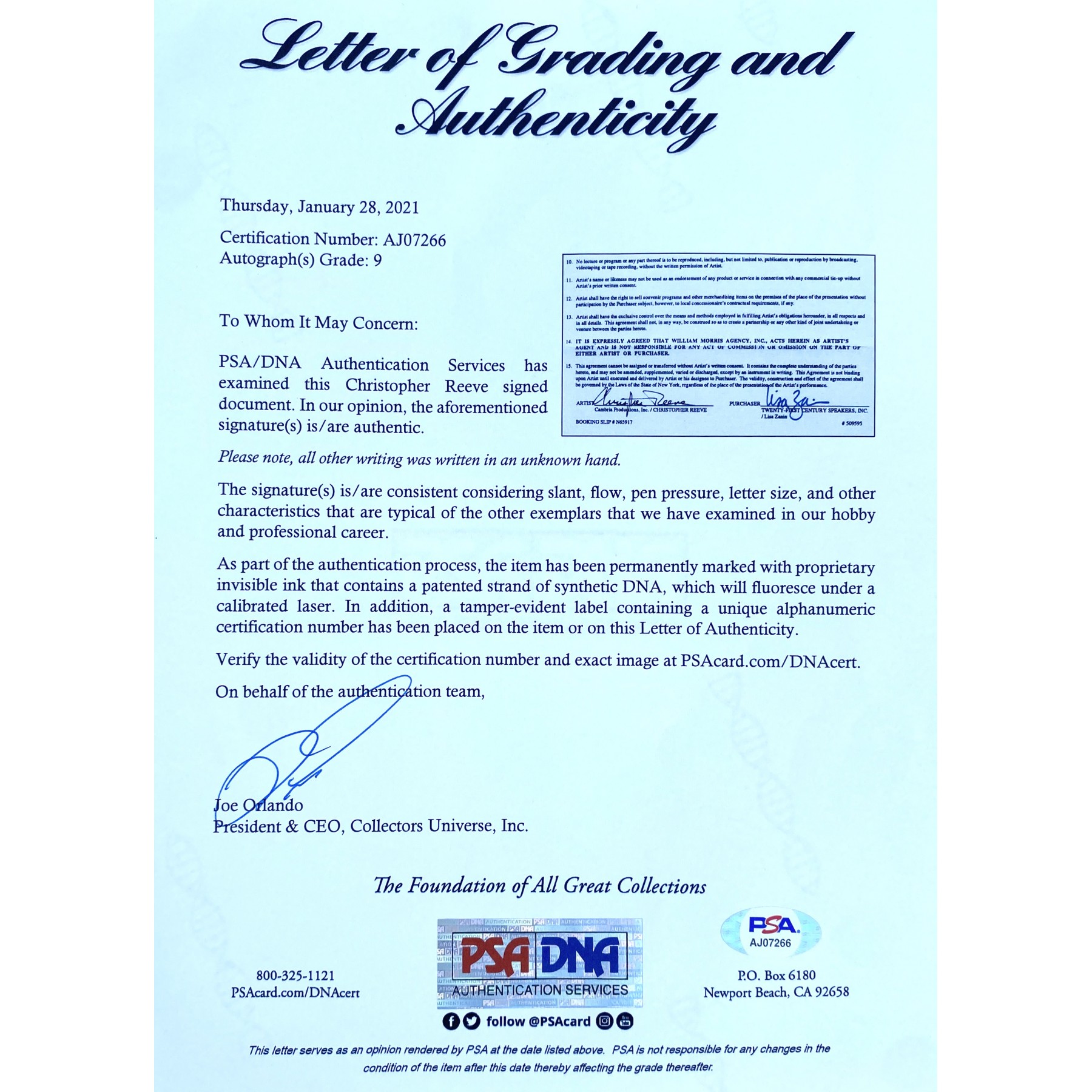 Item #0491 Christopher Reeve Signed 1994 Contract - Superman Display, Auto Grade 9 - PSA/DNA SOLD