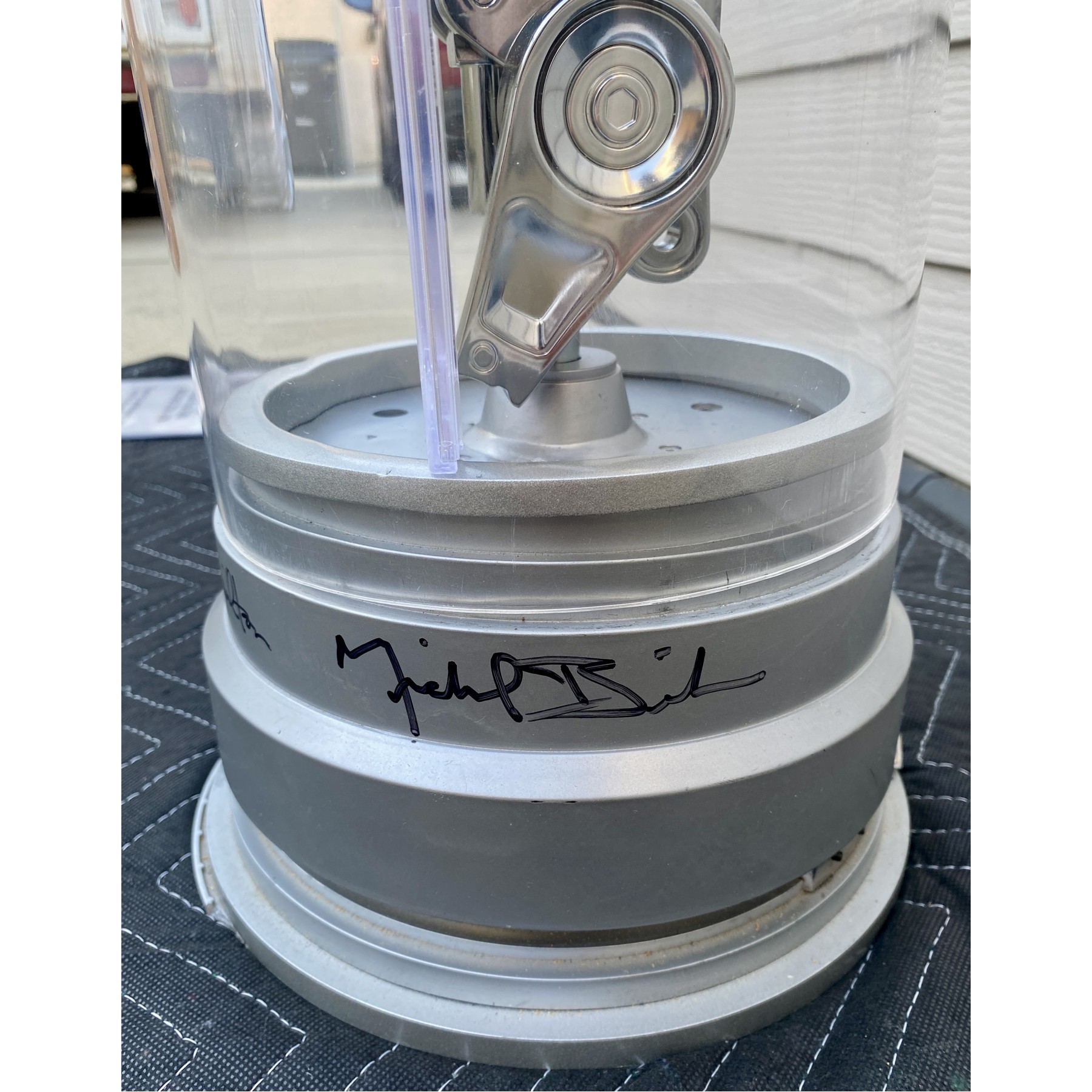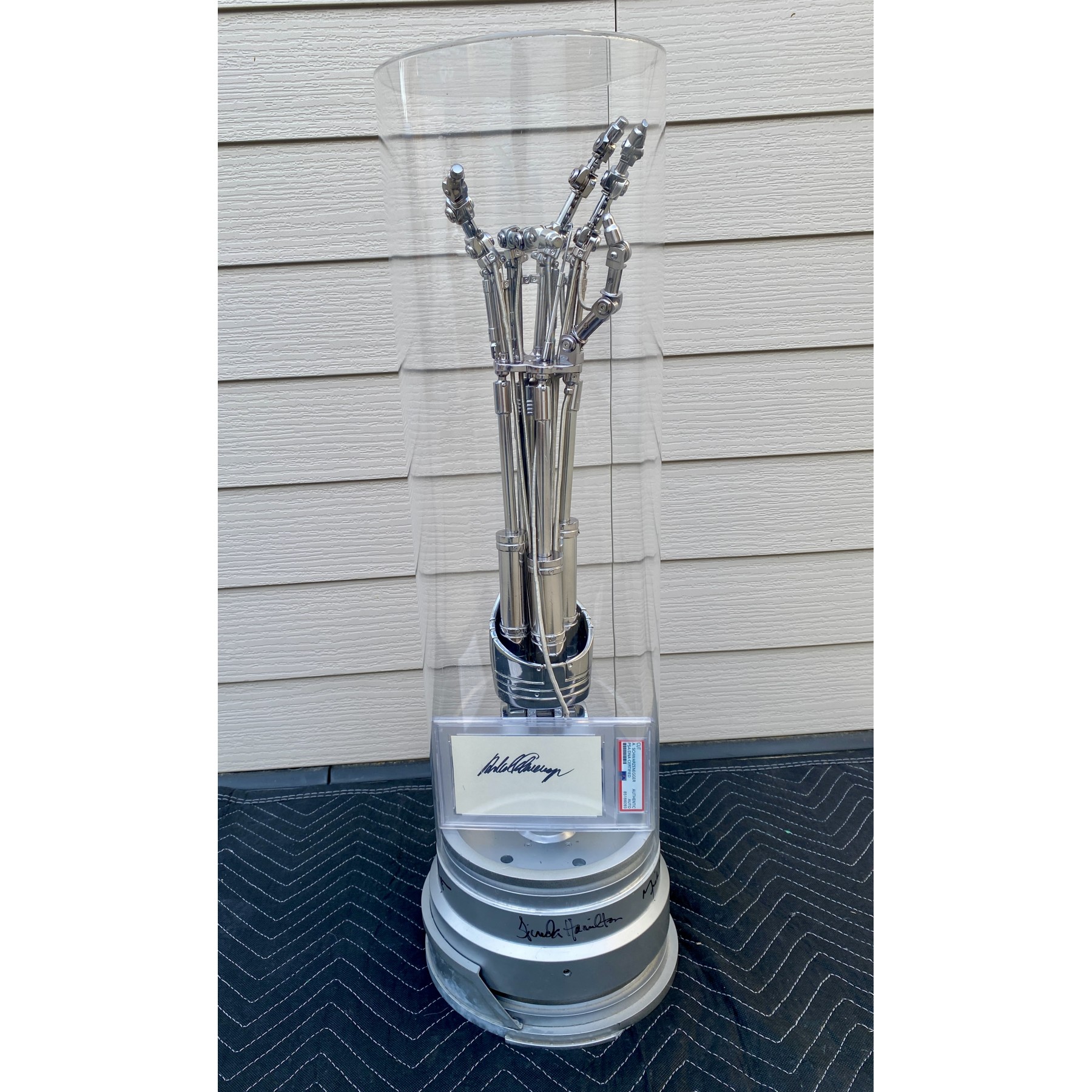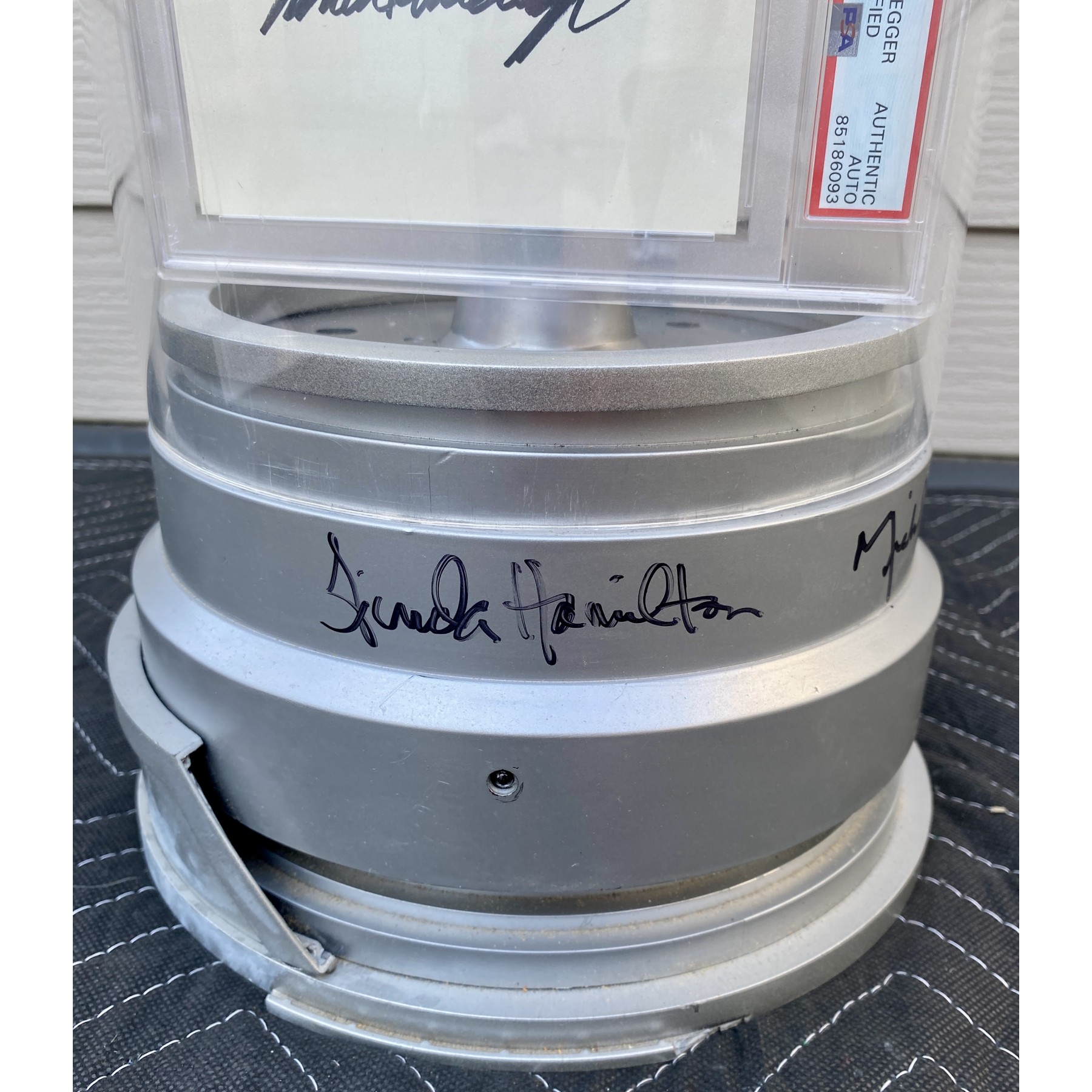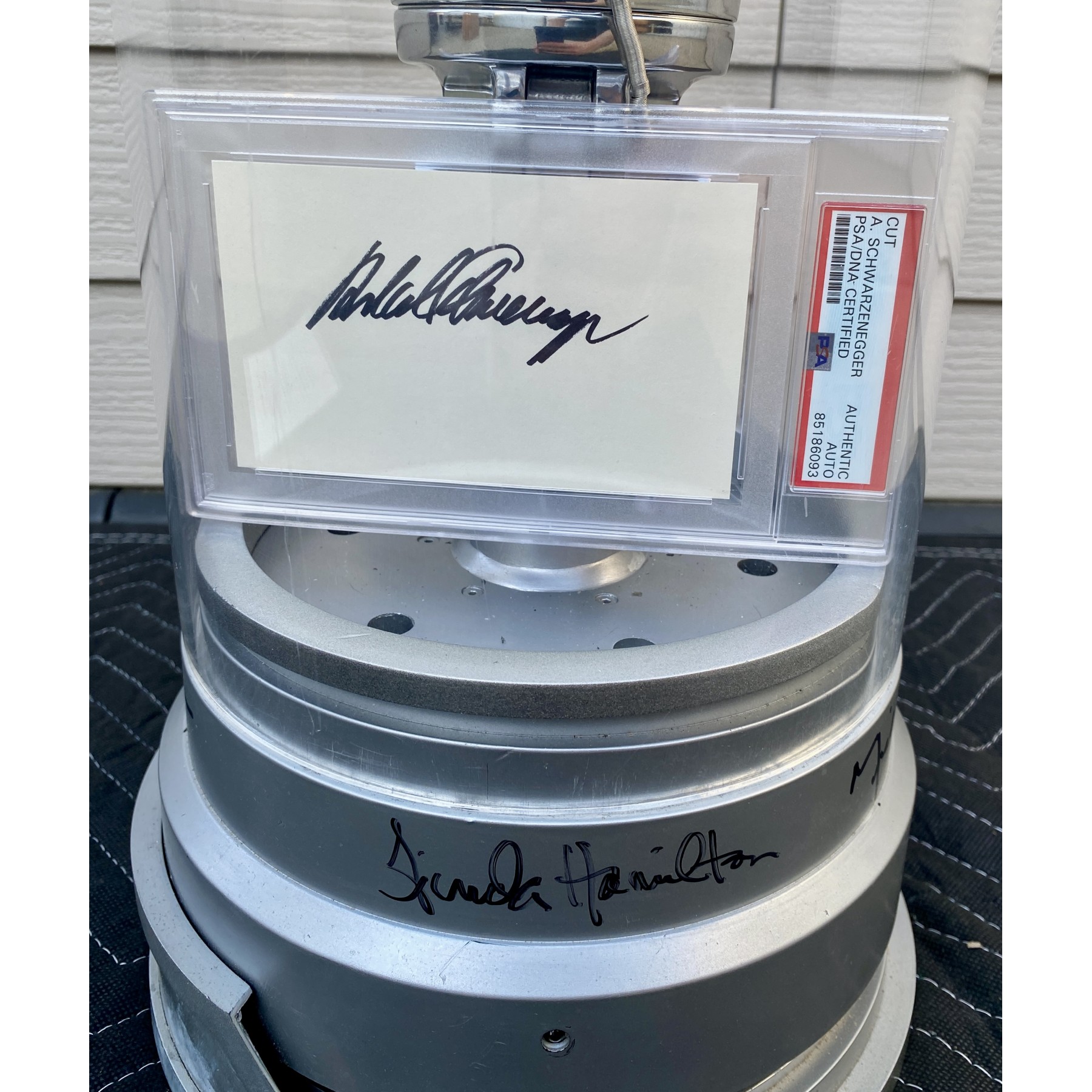 This striking display collectible features a Blitzway/Sideshow Terminator 2: Judgment Day T-800 endoskeleton arm, boldly signed by Linda Hamilton, Michael Biehn, and Edward Furlong at FanX Salt Lake City in September 2024. Each autograph is authenticated by JSA (#AZ24047). Also included is a separately PSA encapsulated & authenticated autograph of Arnold Schwarzenegger, completing this powerhouse ensemble. Please note: the arm is for display only and does not include the brain chip. An essential piece for any Terminator enthusiast or sci-fi autograph collector.