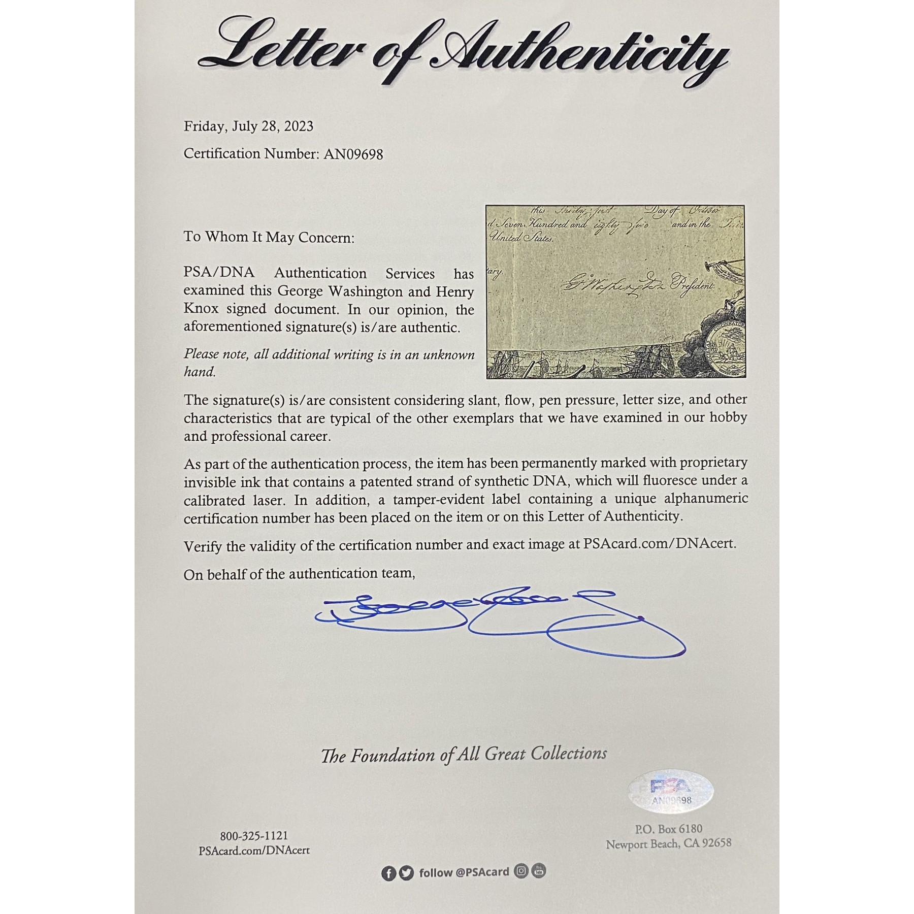 One of the more well preserved examples ever seen of a highly coveted complete George Washington signed document! Accompanied by a full Letter of Authenticity from PSA/ DNA.
