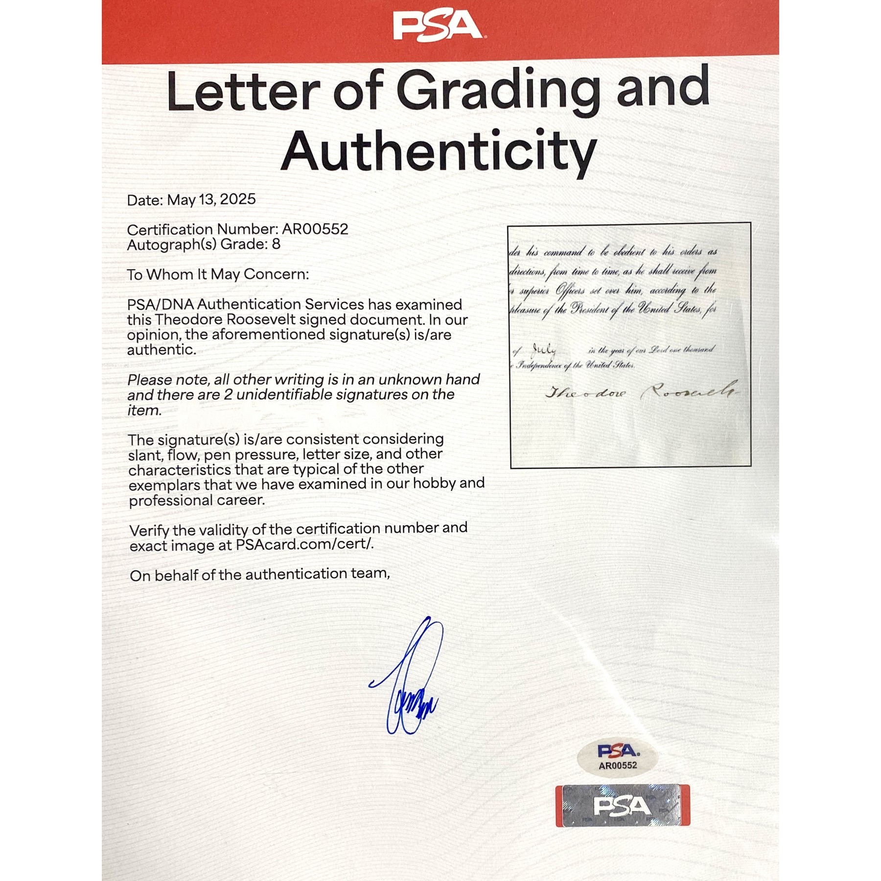 Item #0507 Theodore Roosevelt Signed 1907 Presidential Military Document - PSA