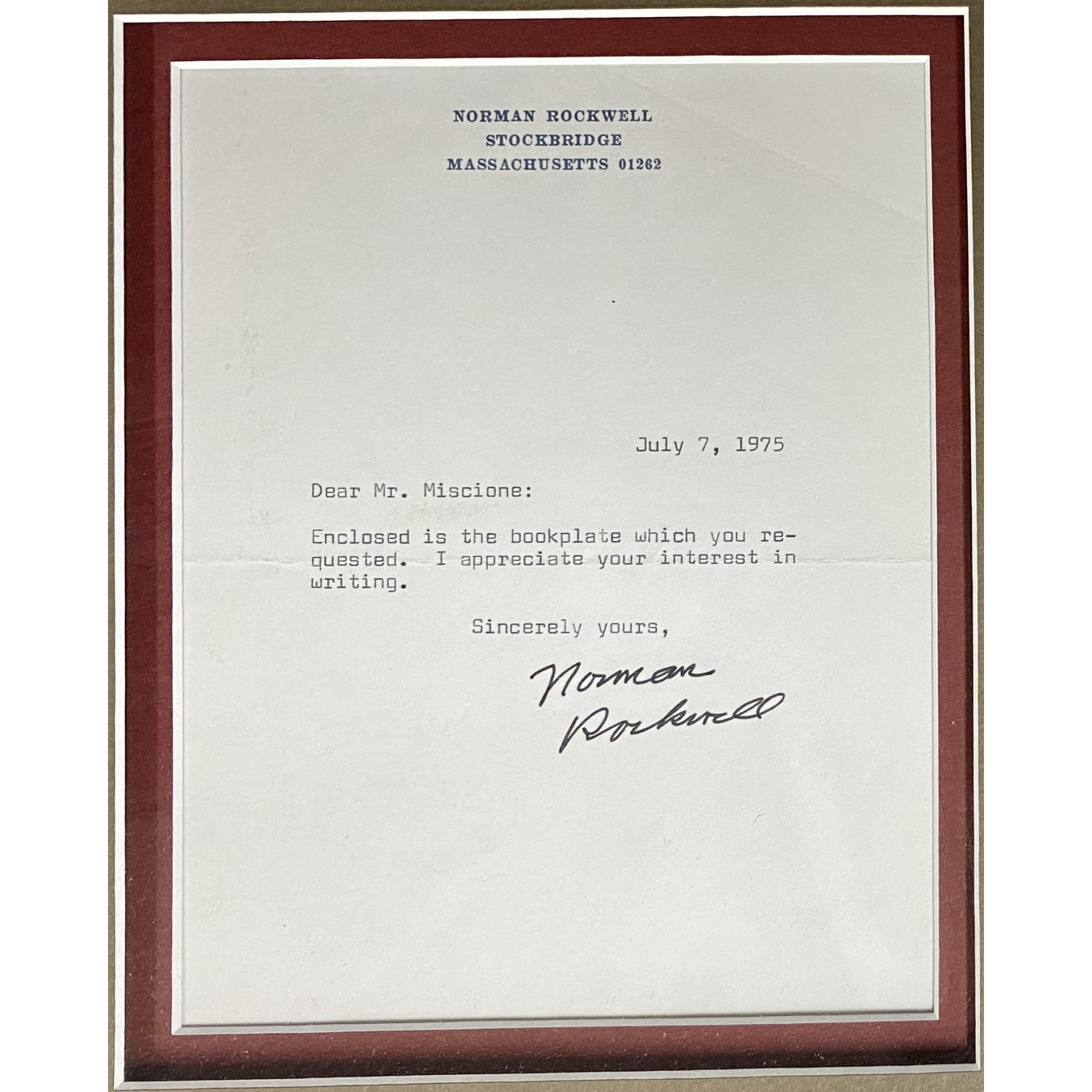 Item #0511 Norman Rockwell Signed Letter Framed Display - PSA/DNA