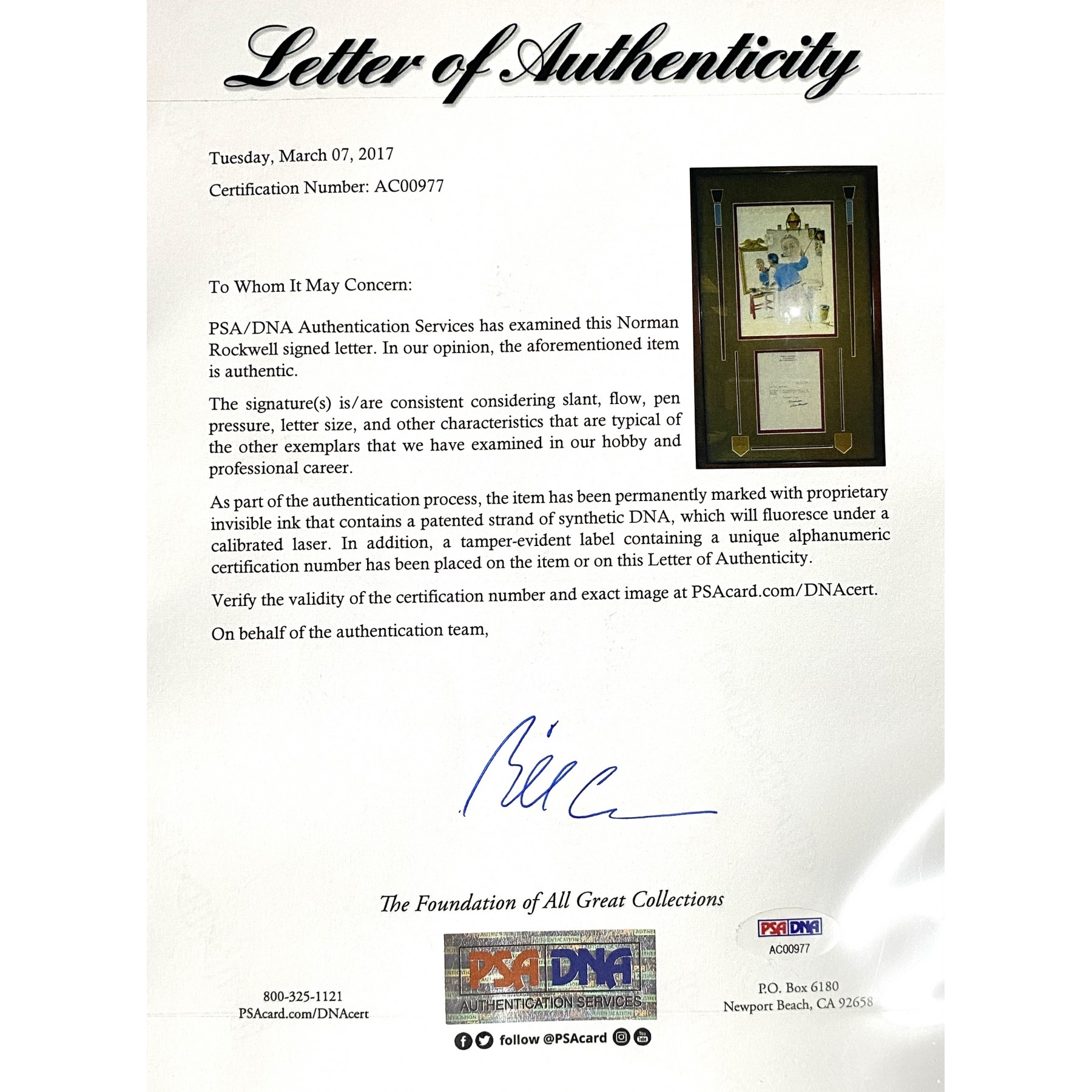 Authentication: PSA/DNA Letter of Authenticity