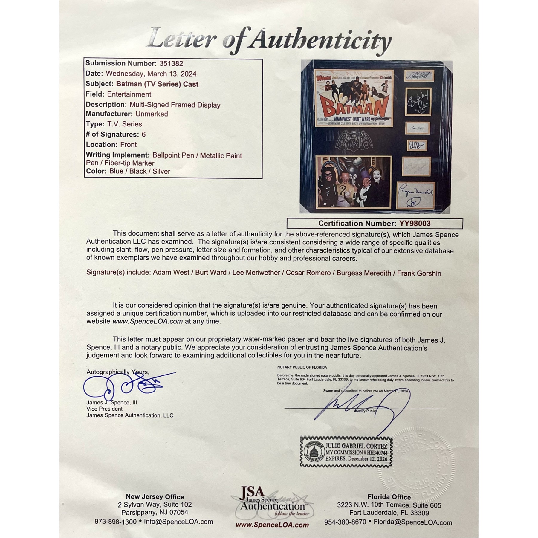 Item #0514 Batman TV Show Cast Signed Framed Display - West, Ward, Romero + More - JSA