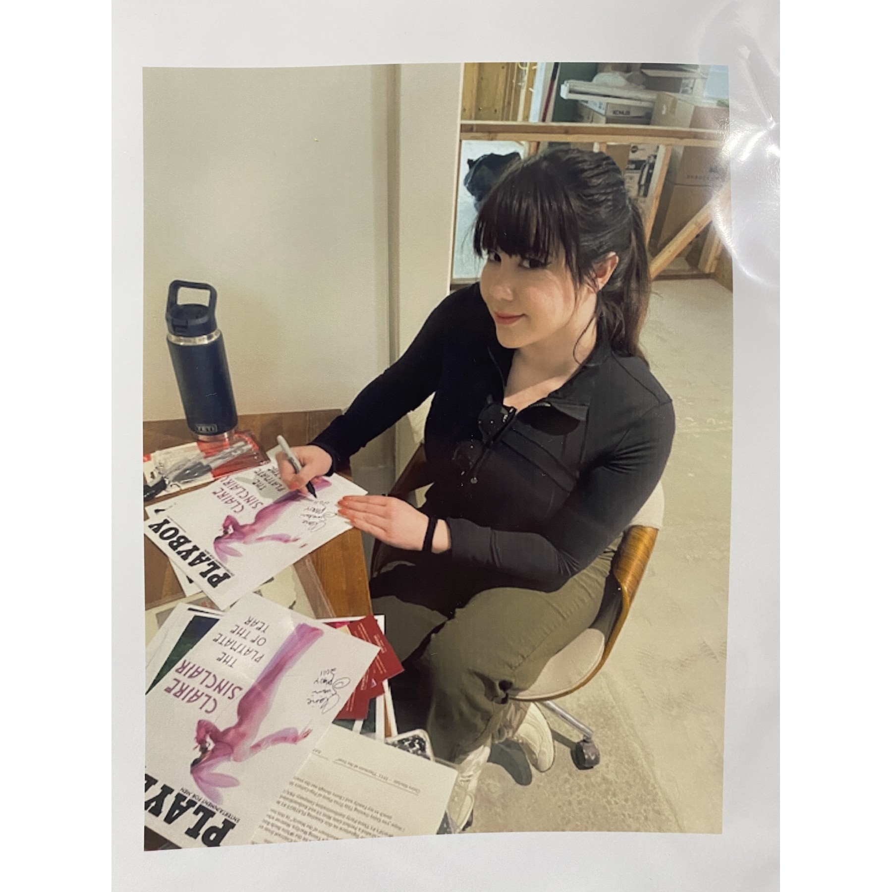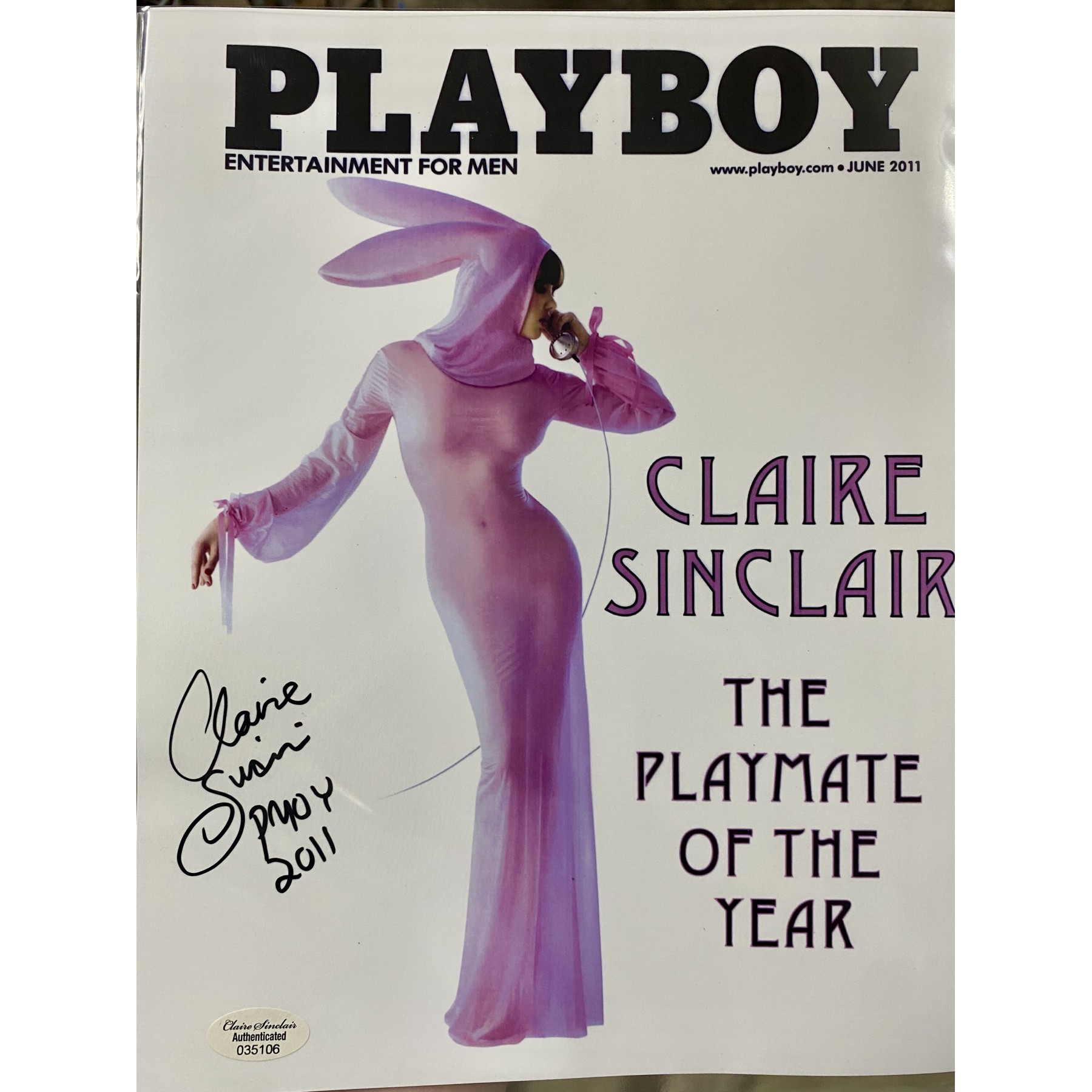 Also included are two signed 8"x10" photos of 2011 Playmate of the Year Claire Sinclair, both with Claire Sinclair Authenticated stickers & include photo provenance of the signing.