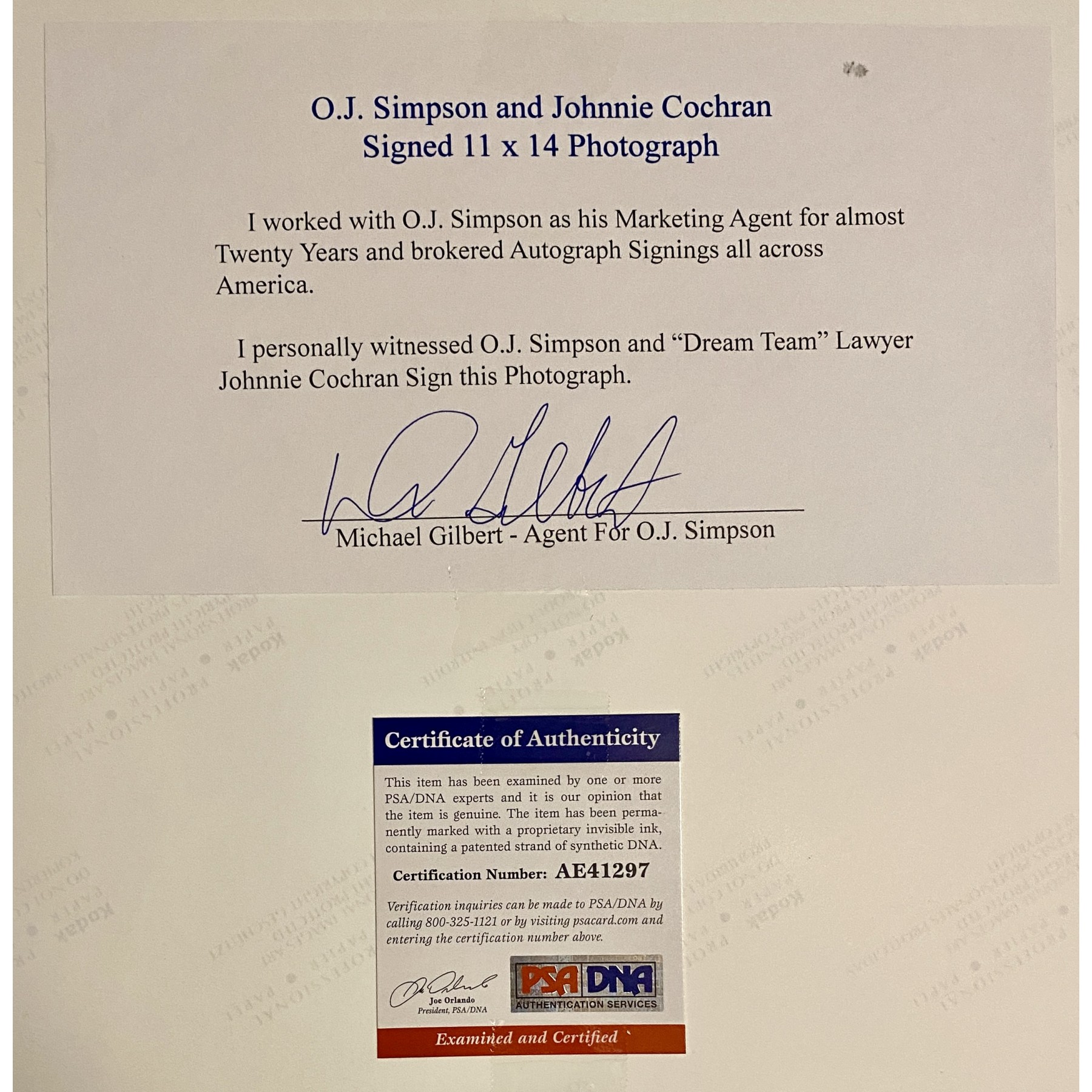 Item #0545 O.J. Simpson & Johnnie Cochran Signed 11" x 14" Courtroom Photo – PSA/DNA