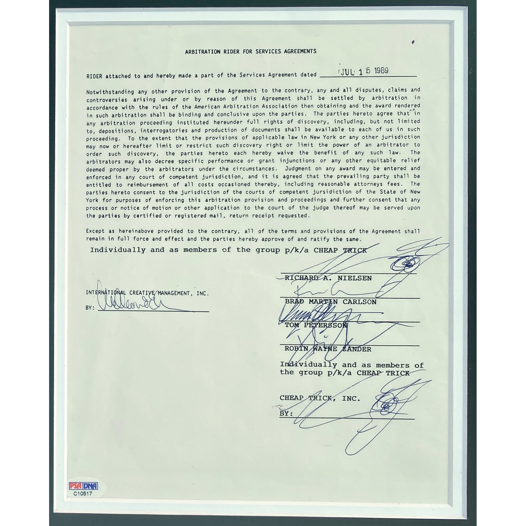 Item #0486 Cheap Trick Full Band Signed 1989 Arbitration Contract Display - PSA