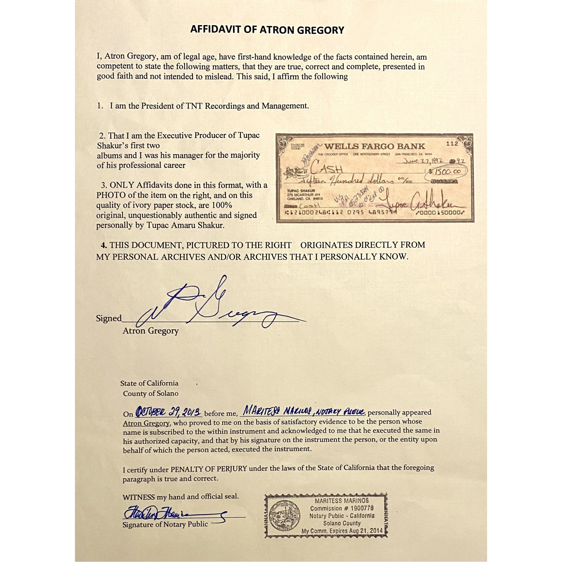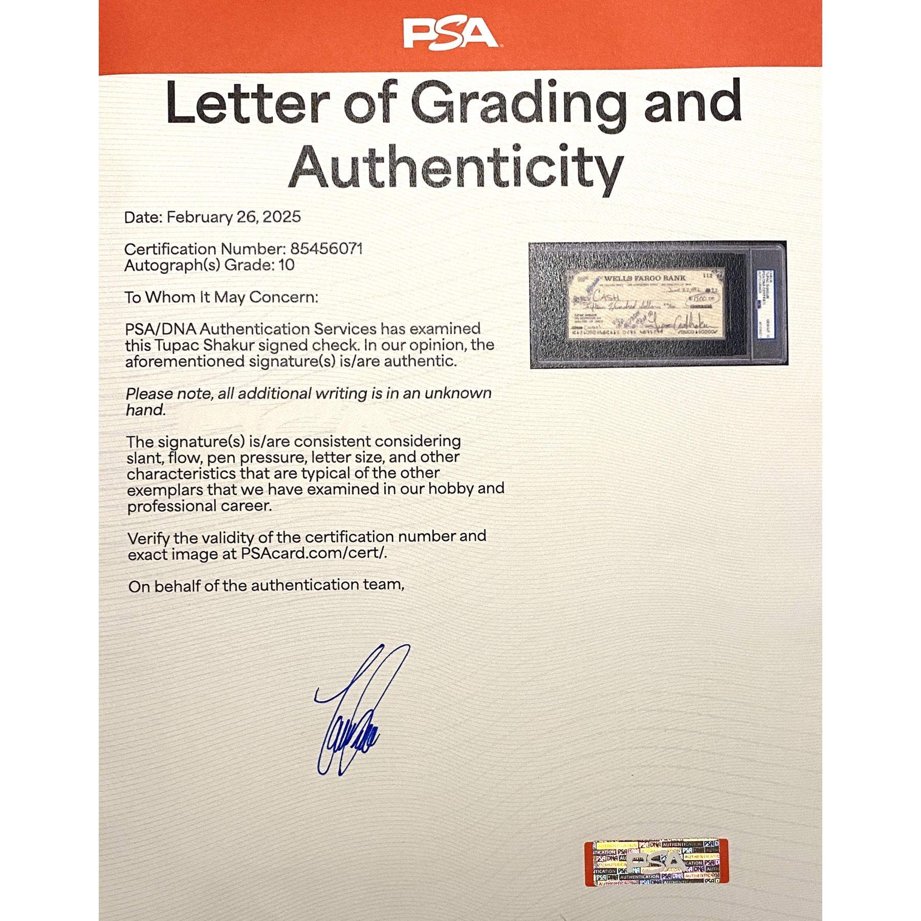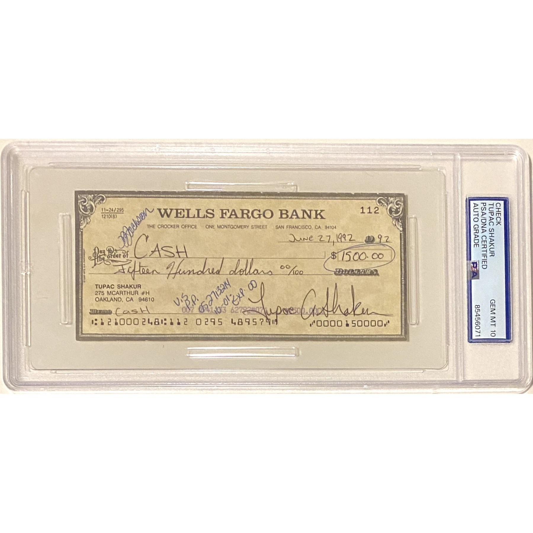 Item #0533.2 Tupac Shakur Signed Check – PSA GEM MINT 10 & Provenance