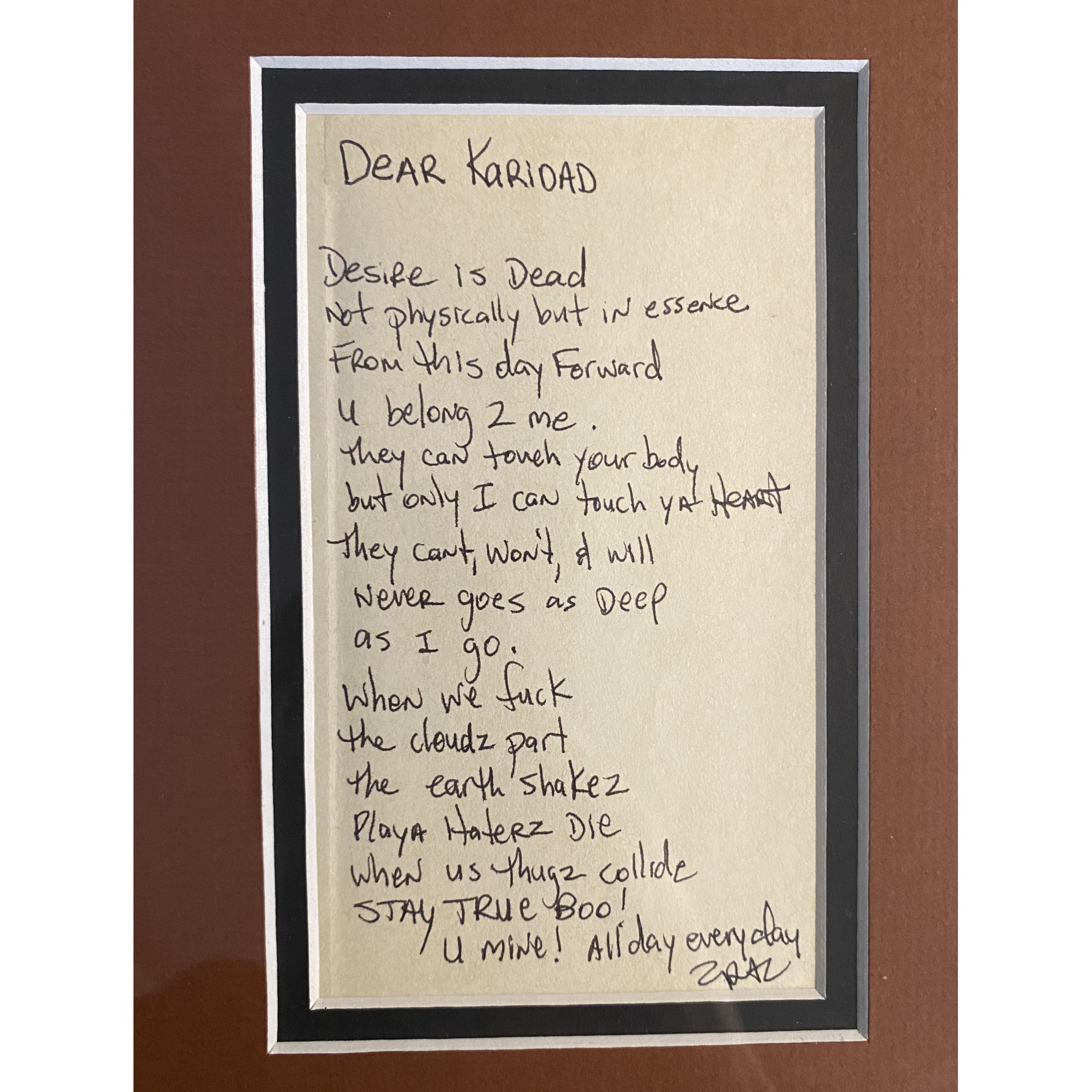 Item #0372 Tupac Shakur (2Pac) Signed Love Poem - JSA SOLD