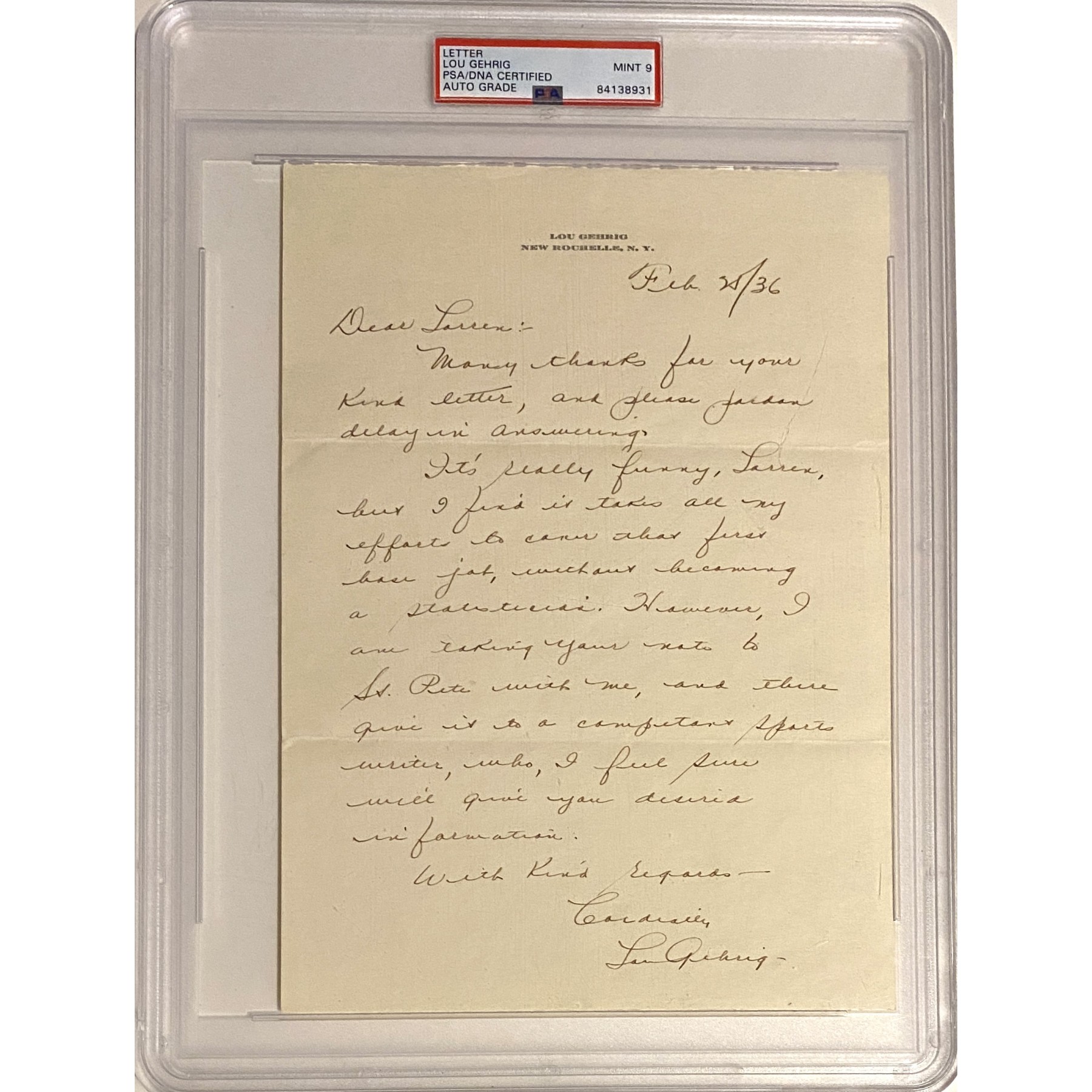 Item #0542 Lou Gehrig Handwritten 1936 Letter on Personal Letterhead – PSA MINT 9